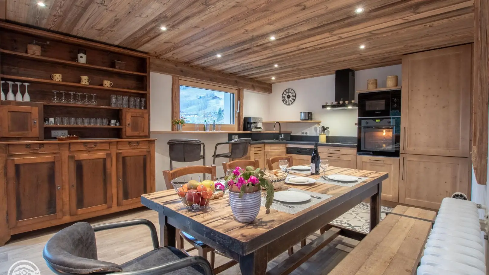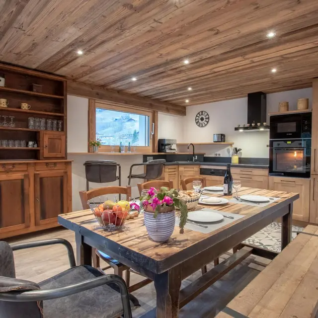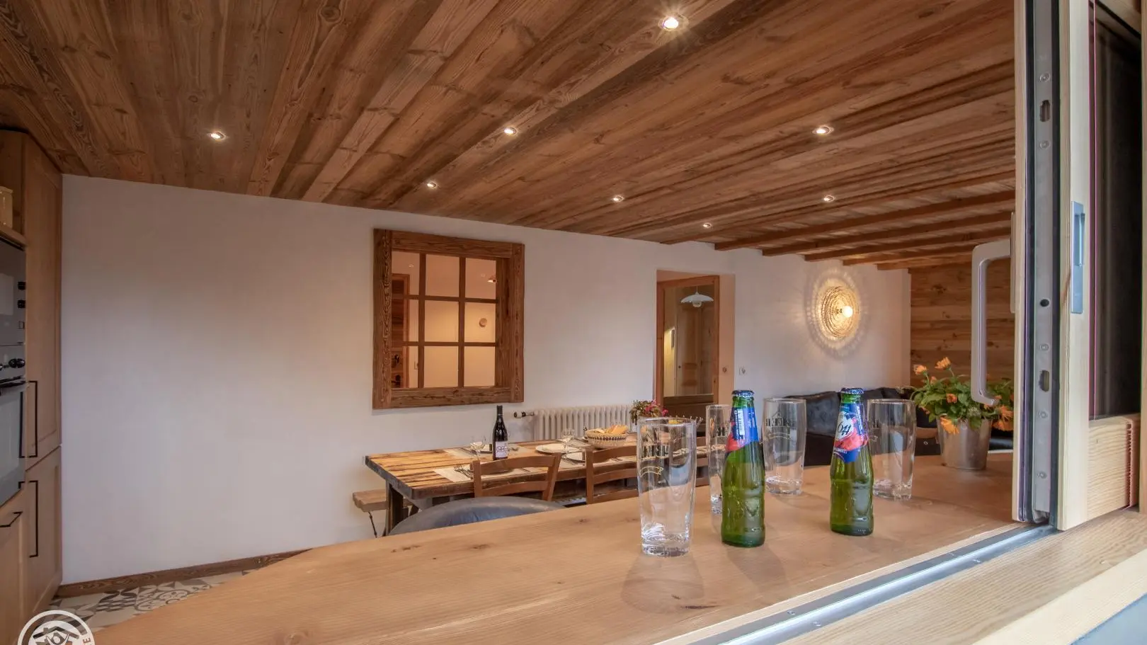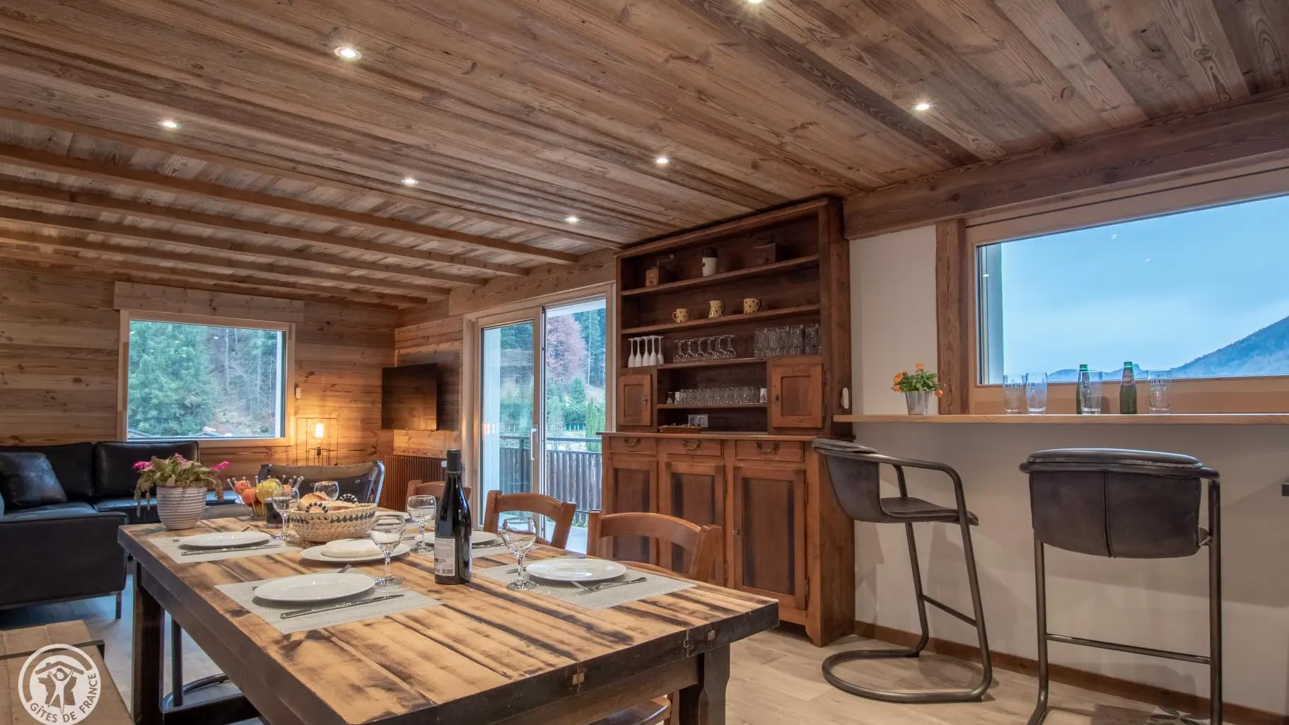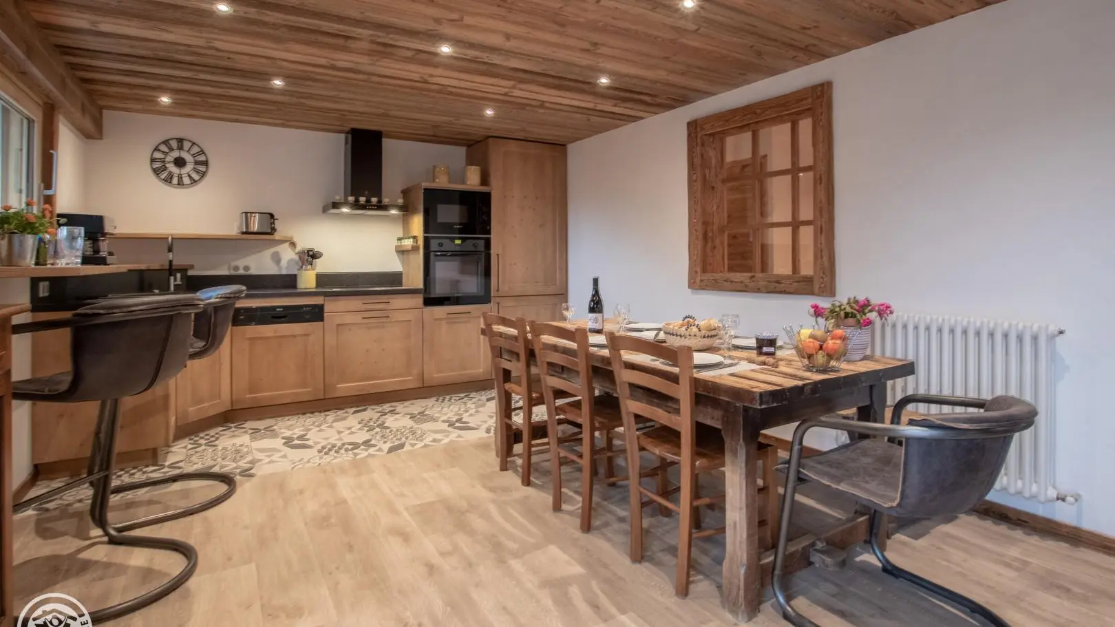 House with 3 gîtes and a rental. 83 m2 gîte on the 1st floor: living room with kitchen area, dining area and lounge area, bedroom 1 (1 double bed), bedroom 2 (1 double bed), bedroom 3 (2 single beds), bathroom, Independent WC. Shared clothes dryer, central heating, balcony, common area. Possibility to rent sheets. Ski resort: Le Grand-Bornand 0.5 km, cross-country skiing 0.2 km. Free ski bus.