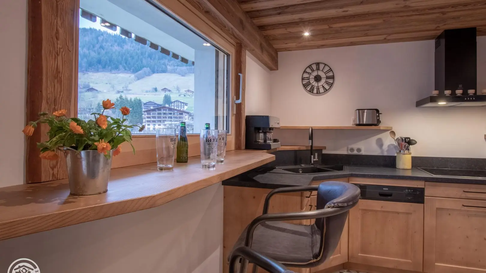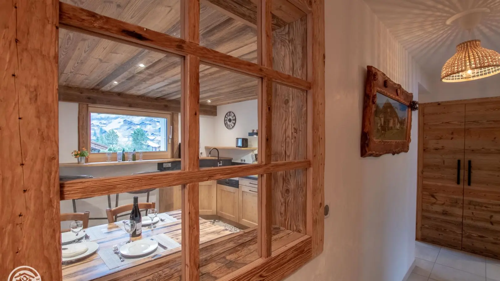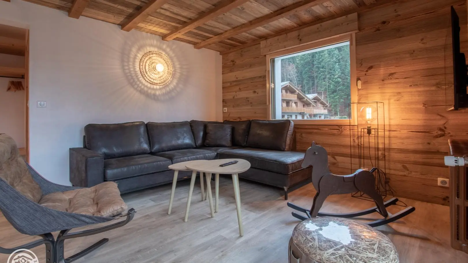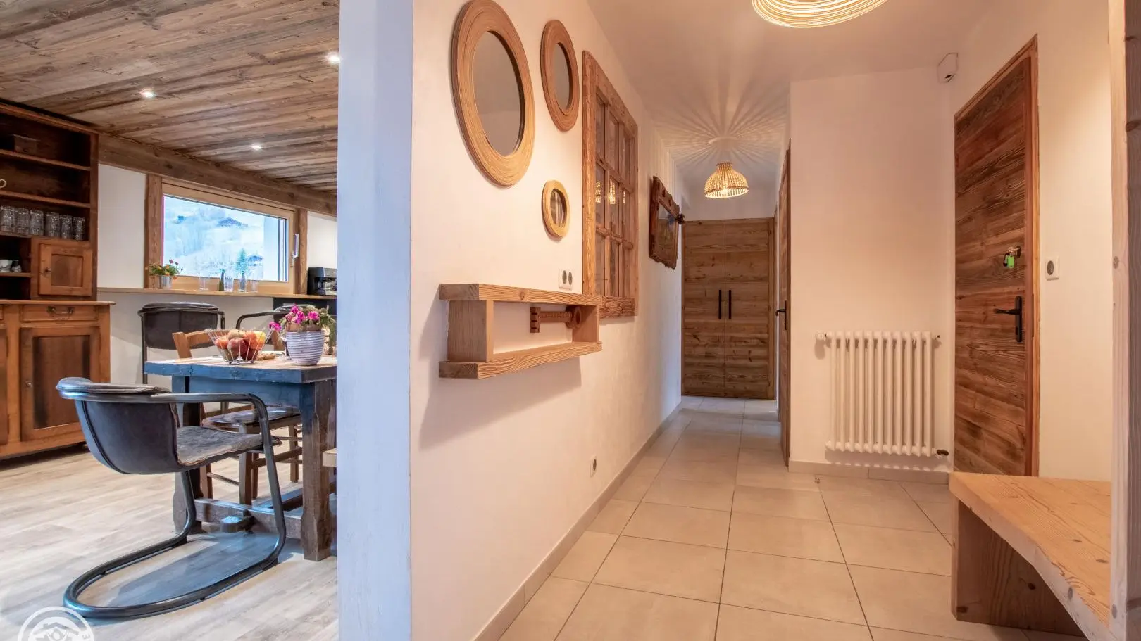 House with 3 gîtes and a rental. 83 m2 gîte on the 1st floor: living room with kitchen area, dining area and lounge area, bedroom 1 (1 double bed), bedroom 2 (1 double bed), bedroom 3 (2 single beds), bathroom, Independent WC. Shared clothes dryer, central heating, balcony, common area. Possibility to rent sheets. Ski resort: Le Grand-Bornand 0.5 km, cross-country skiing 0.2 km. Free ski bus.