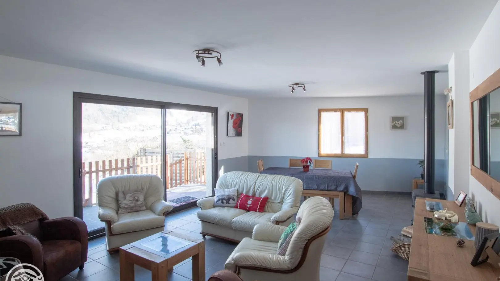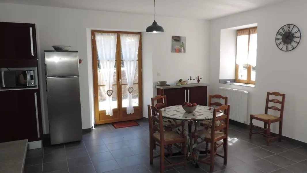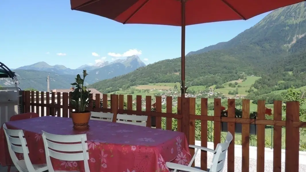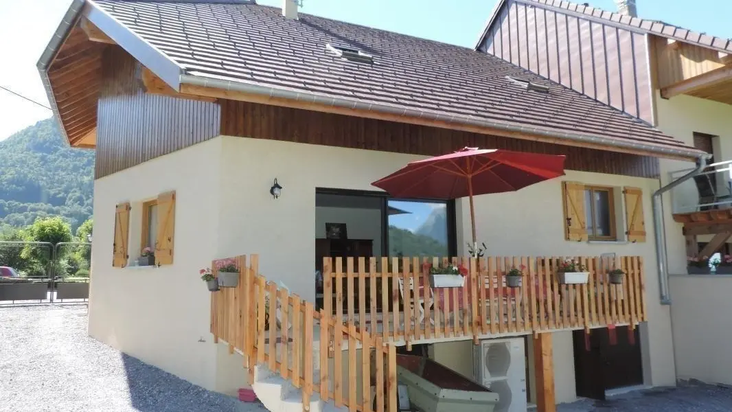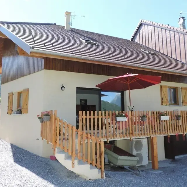 Offering an unobstructed view of the mountains, in the heart of the hamlet, beautiful village (152 m²) house built on 2 levels, adjoining another home. Ground floor: fitted kitchen, large living/dining room with access to balcony-terrace (garden furniture), CH1 (2 beds 90 x 190 cm), bathroom (bath and shower), toilet. Upstairs (steep stairs): CH2 (1 bed 160 x 200), CH3 (1 bed 140 x 190 cm), shower room, WC. Garden (garden furniture, barbecue), yard, parking, garage. Linens provided. Ski: Seythenex / La Sambuy 5km, shuttle winter 500 m. Lake Annecy (beaches) 14km, Albertville 20km, Annecy 30km. Hiking in Massif des Bauges. 3 weeks-10%.