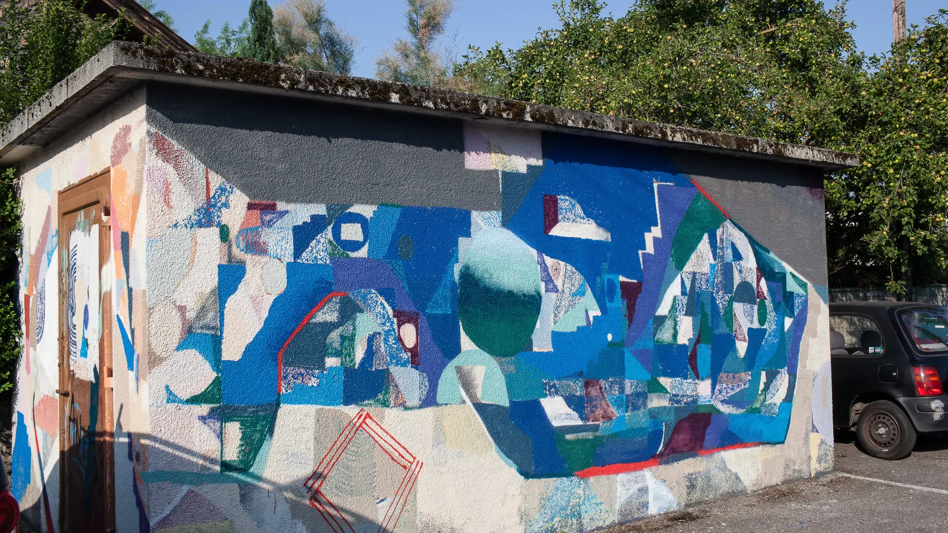MSHL is obsessed by the color blue. Based in Montreal, he plays with shades of natural colors and forms, emptiness and fullness. His abstract mural works along with the scenery of the Annecy mountains.