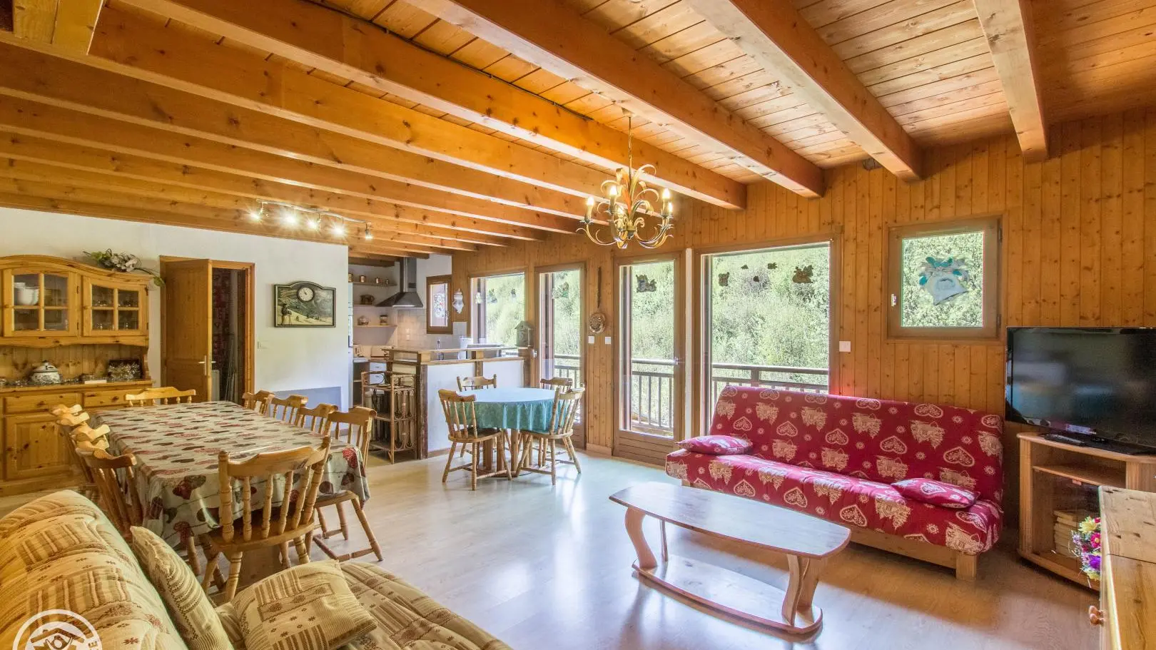 Integrated kitchen open to living room (TV, sofa bed with extra beds), bathroom (bath), separate wc.