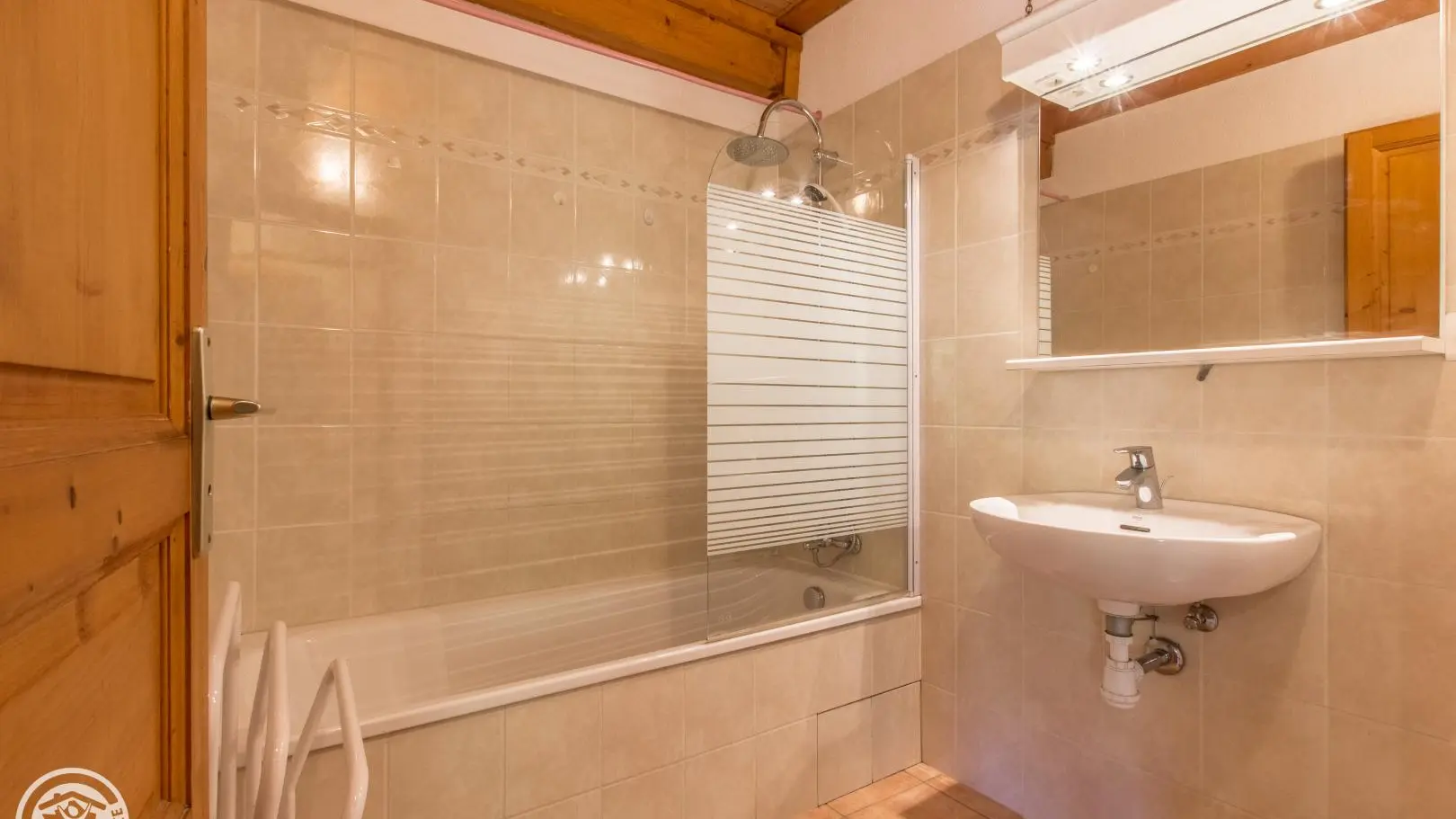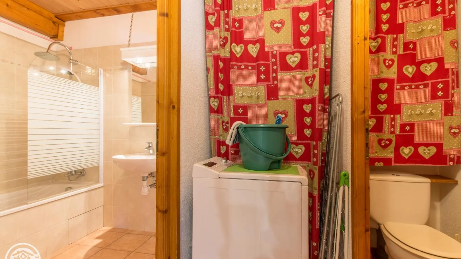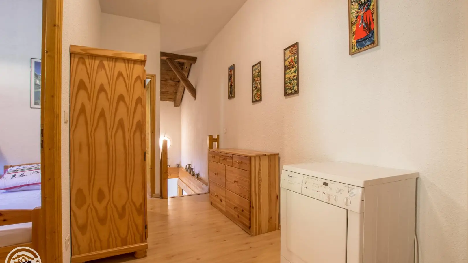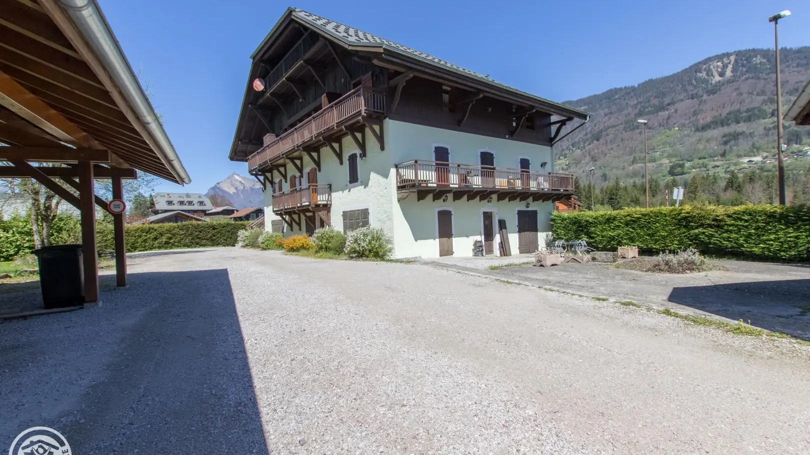 Private parking with 2 covered spaces for the apartment. Common storage box for skis and bicycles.