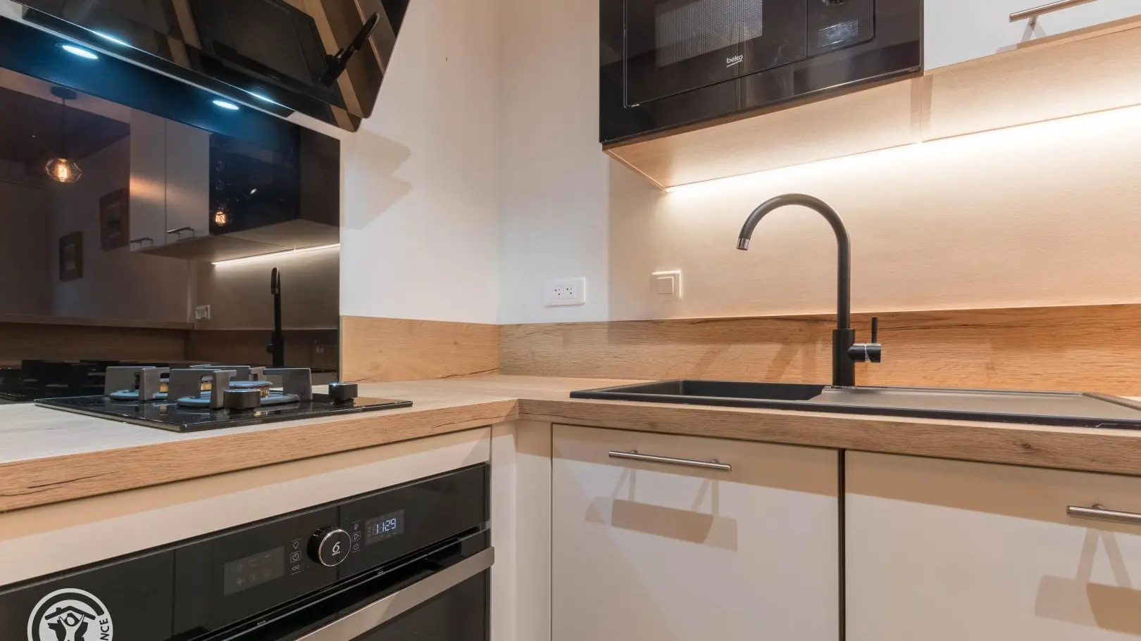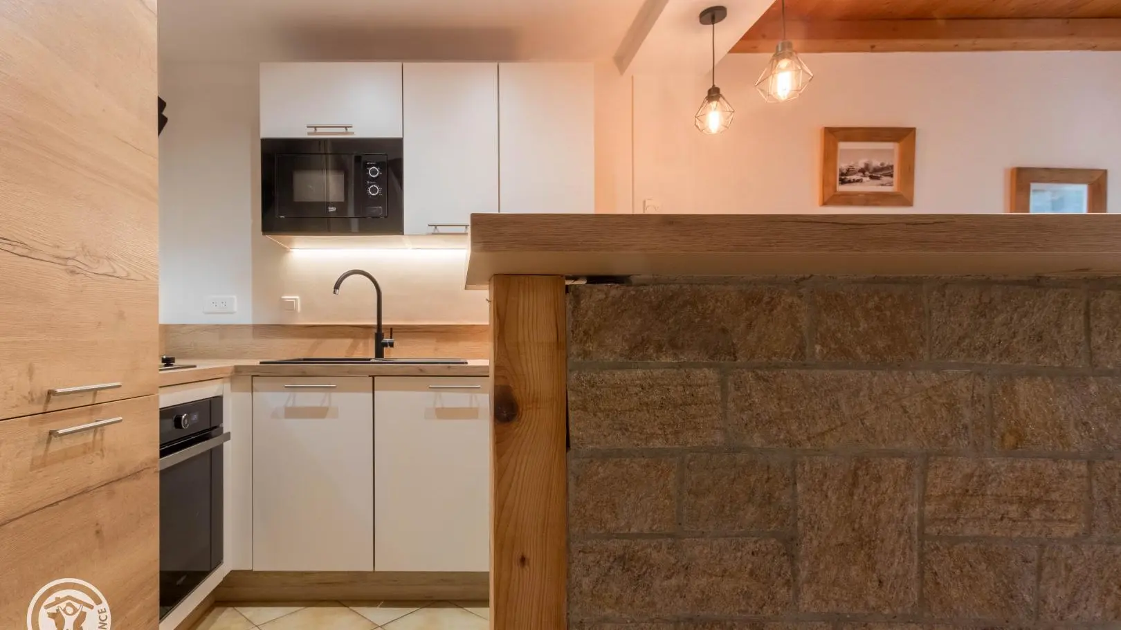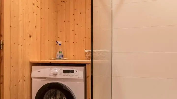 Common entrance with storage. Integrated kitchen open to living room and lounge (sofa convertible into a 140x190cm bed, Tv), bedroom (1 140x190cm bed), bathroom (shower), separate toilet.