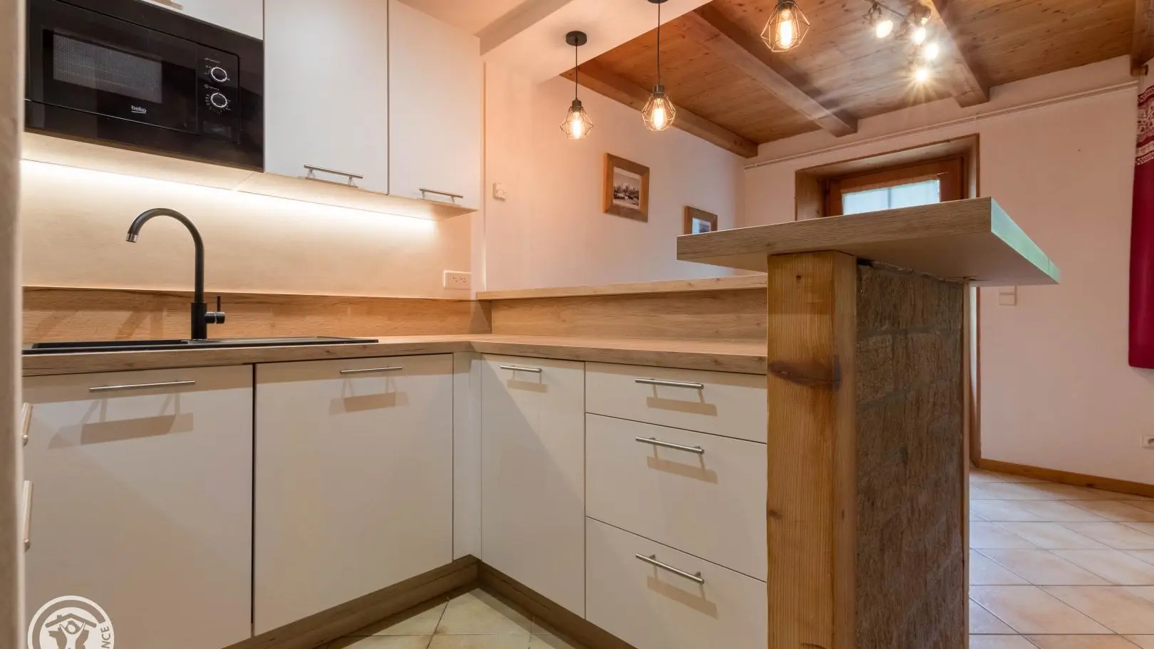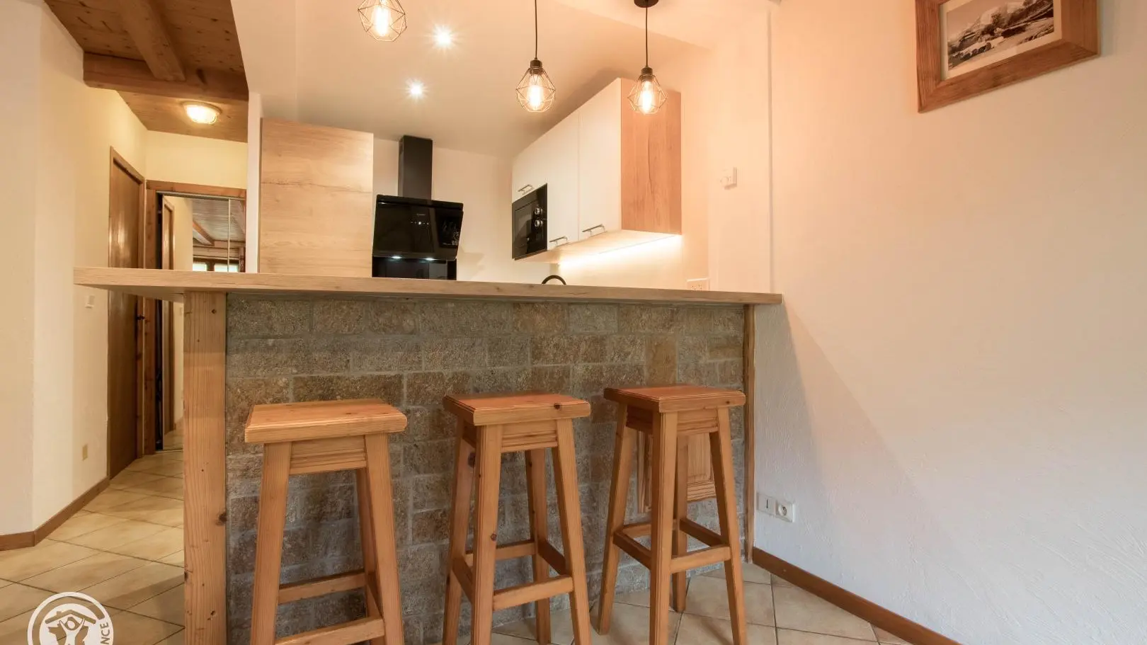 Internet wifi. Possibility to rent sheets. Private garden area with furniture, deckchairs and barbecue. Private ski locker. Shared: indoor hammam and outdoor sauna offering a beautiful view of the valley and the Mont-Blanc massif.
