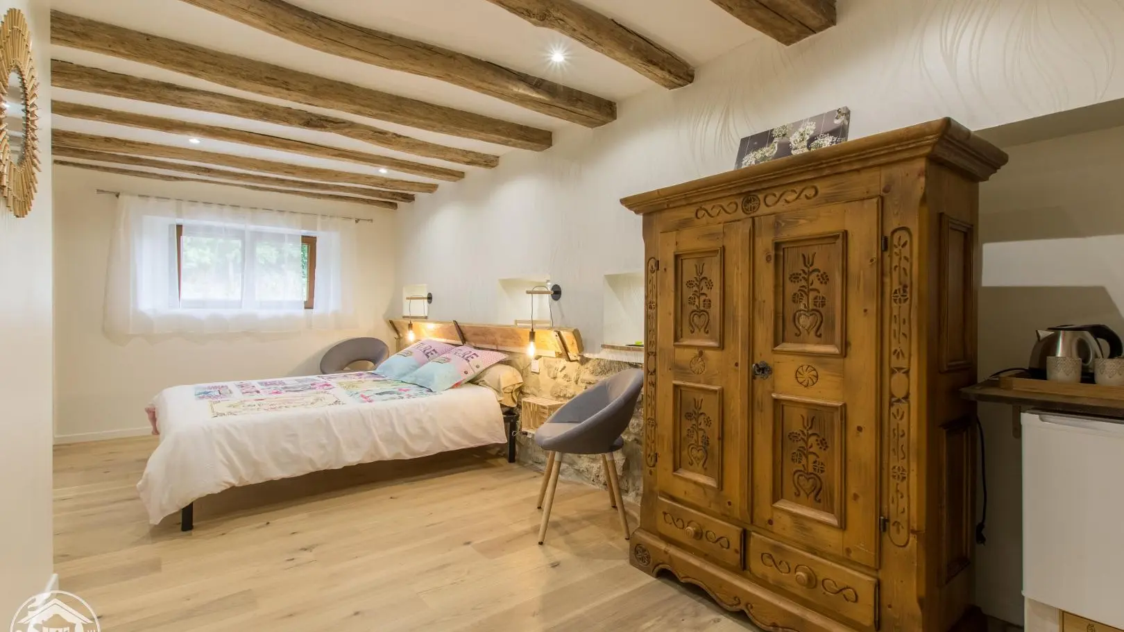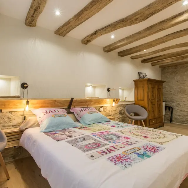 In the heart of the Pays de l'Albanais, in a beautiful property with swimming pool, 2 tastefully furnished guest rooms with independent entrance where wood, stone and contemporary spirit blend perfectly. Annecy and Aix-les-Bains, lakes, swimming at 30km.