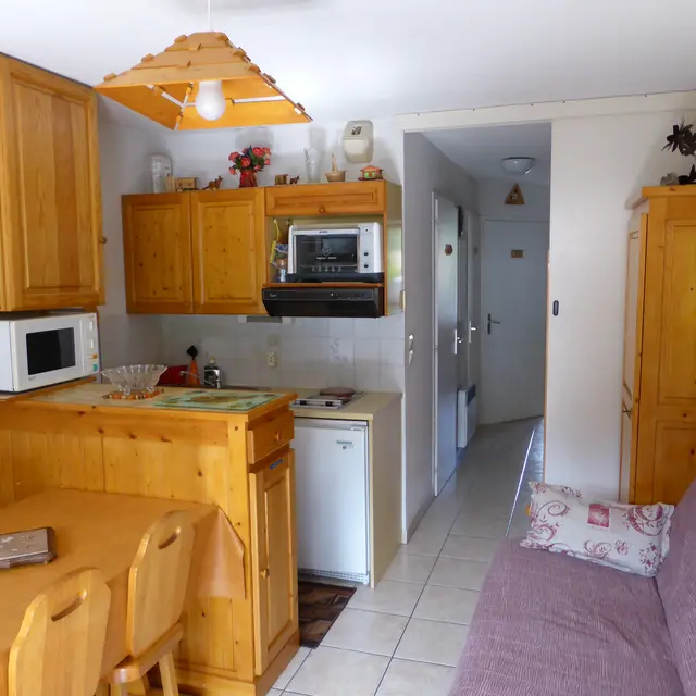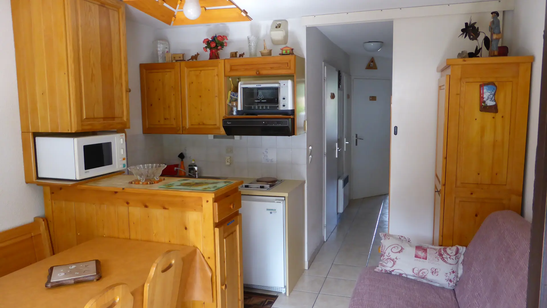 • Equipped kitchenette with dishwasher, microwave, ceramic hob, coffee maker, crockery, cutlery, pressure cooker, fridge, toaster