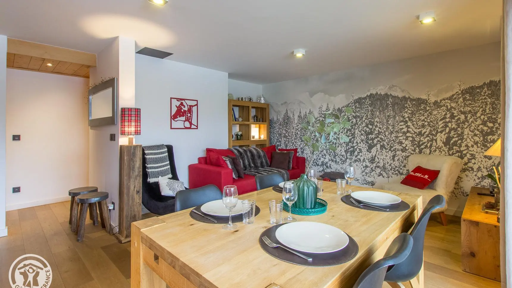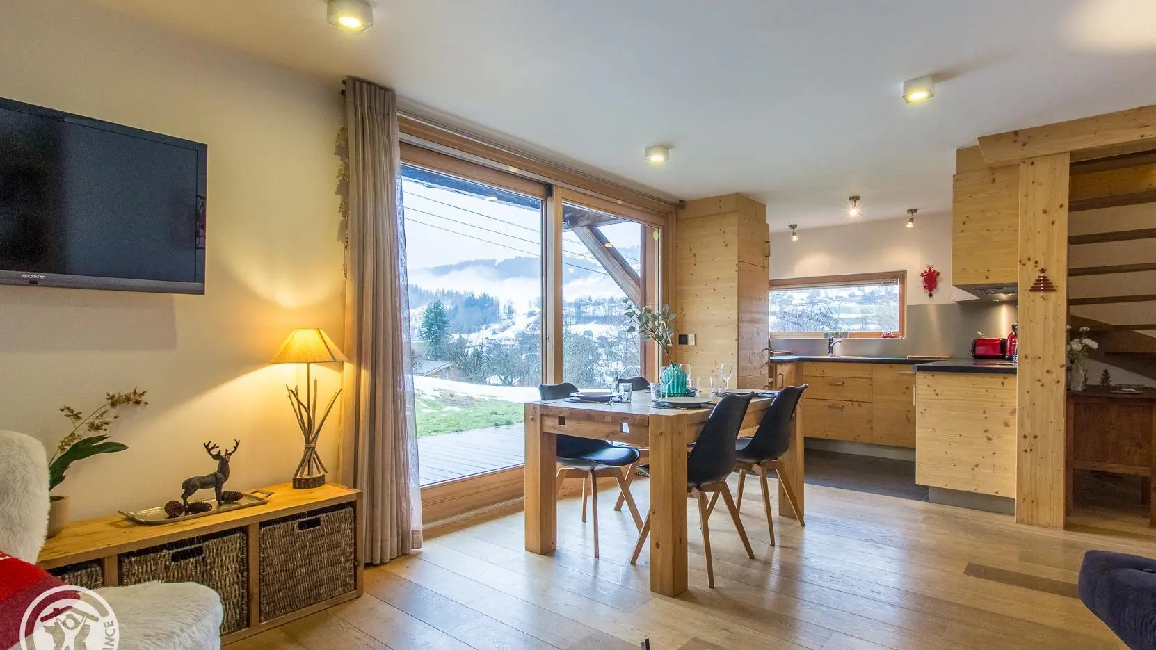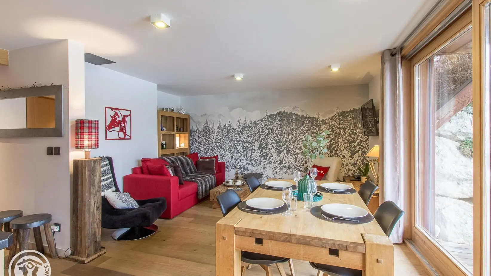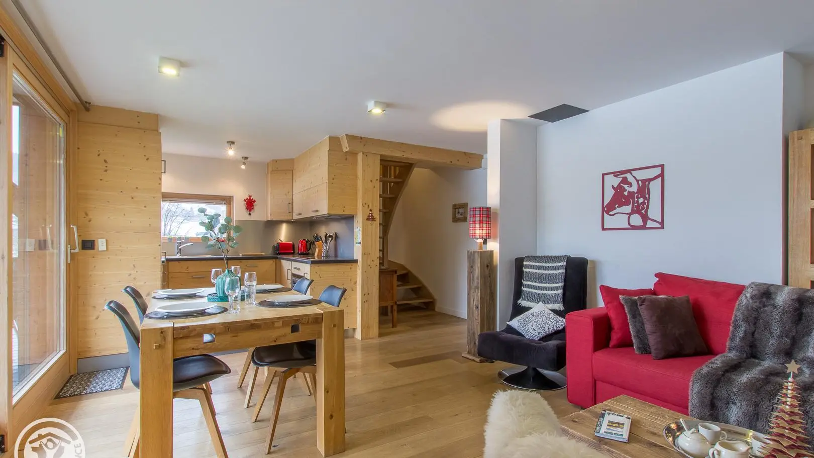70m2 gîte converted into a duplex in a private wing of a luxury chalet located on the slopes of the Megève/Saint-Gervais ski area.