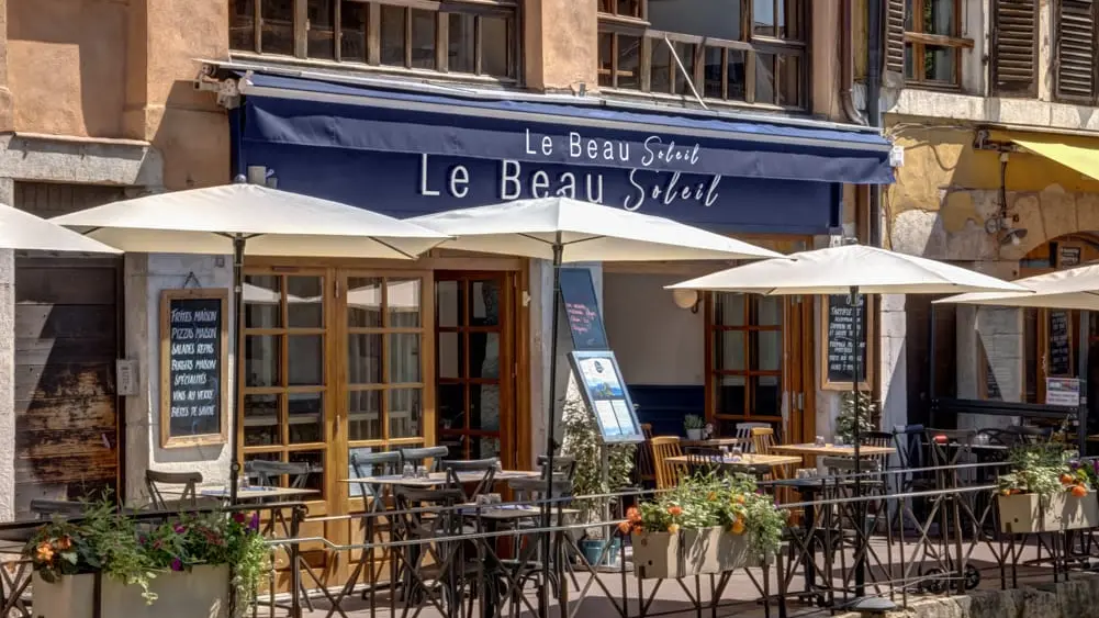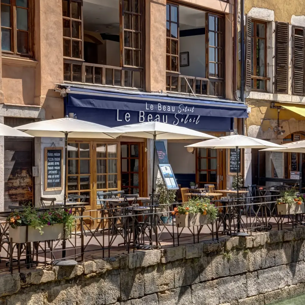 Le Beau Soleil is located in the heart of the old town, 250 m from the lake, on the banks of the Thiou canal. With a terrace of 20 seats and a clear room with a view of La Tournette, we offer regional cuisine (Savoyard specialities), pizzas and salads. Come and enjoy our cuisine made from fresh, local and home-made products in an authentic setting.