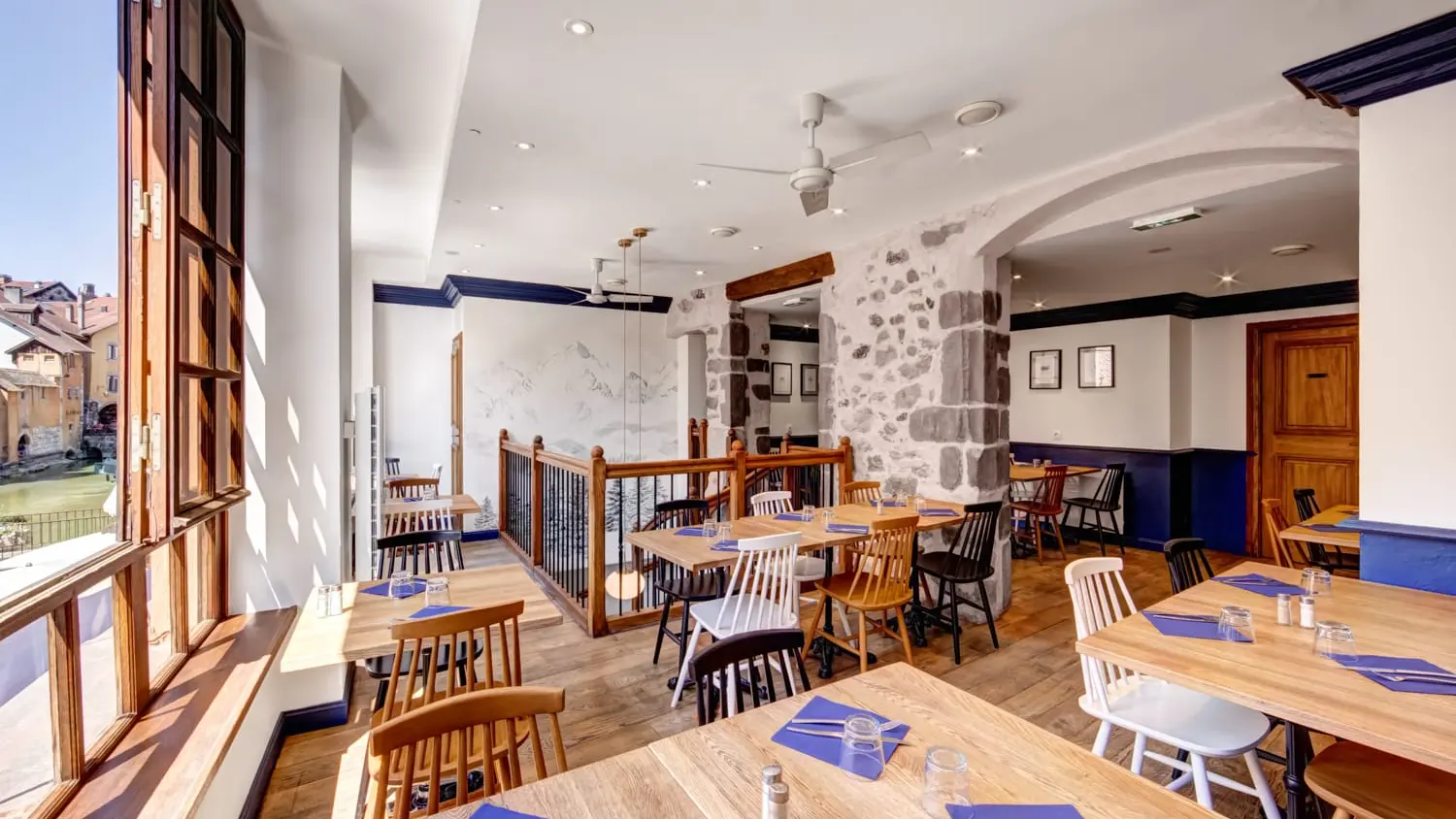 Restaurant located in the heart of the old town, on the banks of the Thiou canal. Authentic view of the Castle and the Palais de l'Ile from our 1st floor room. Savoyard specialities, pizza and home-made salads. Fresh and local products.