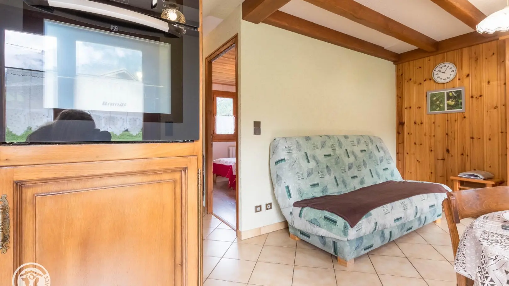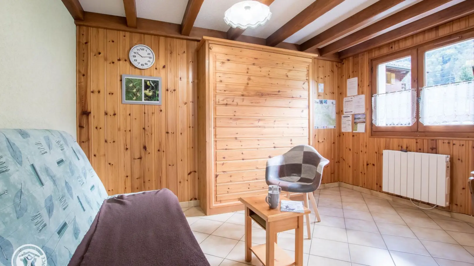 Separate entrance. Kitchen opening onto living room (sofa bed, foldaway wall bed for 2 people). Living room has access to private terrace (BBQ, garden furniture). Bedroom (2 single beds). Shower room. Large shared garden. Parking. Ski store. Electric heating. For hire : bed linen. Village centre 500m. Ski lifts 600m. Sixt is linked to the Grand Massif ski area via free shuttle (600m) service as far as Samoëns (6km). Fer à Cheval is a nationally recognised natural site with nature reserve. Lots of hiking/riding trails nearby.