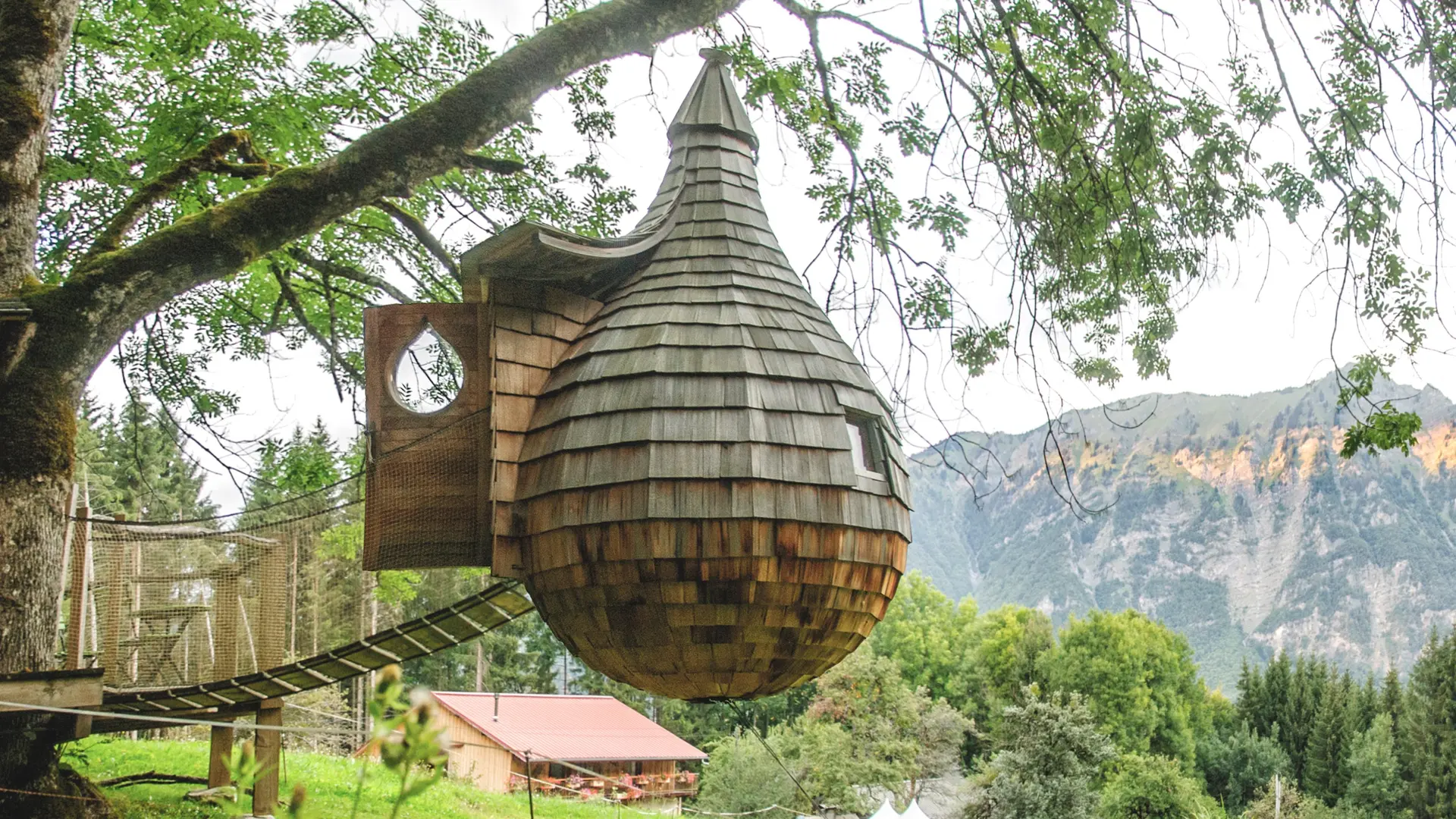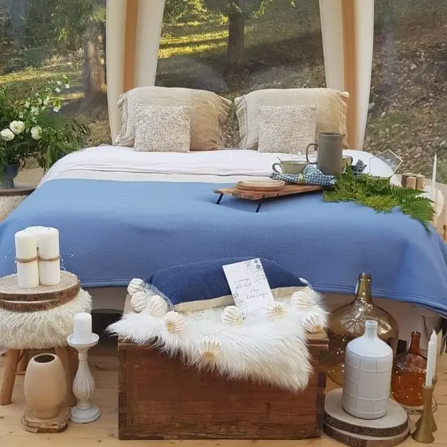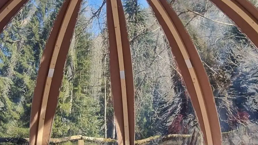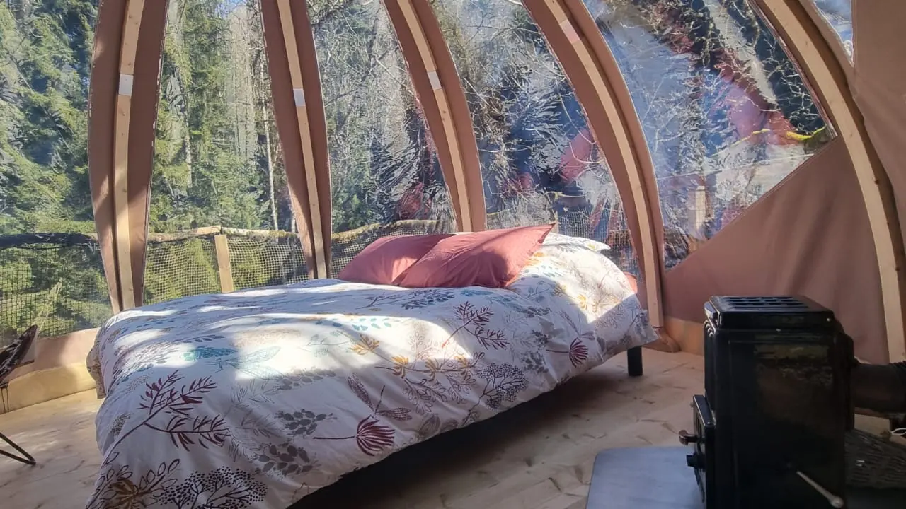 You will find two "bubbles", perched in the trees to sleep in the middle of nature. This transparent bubble is placed on a platform in a tree.