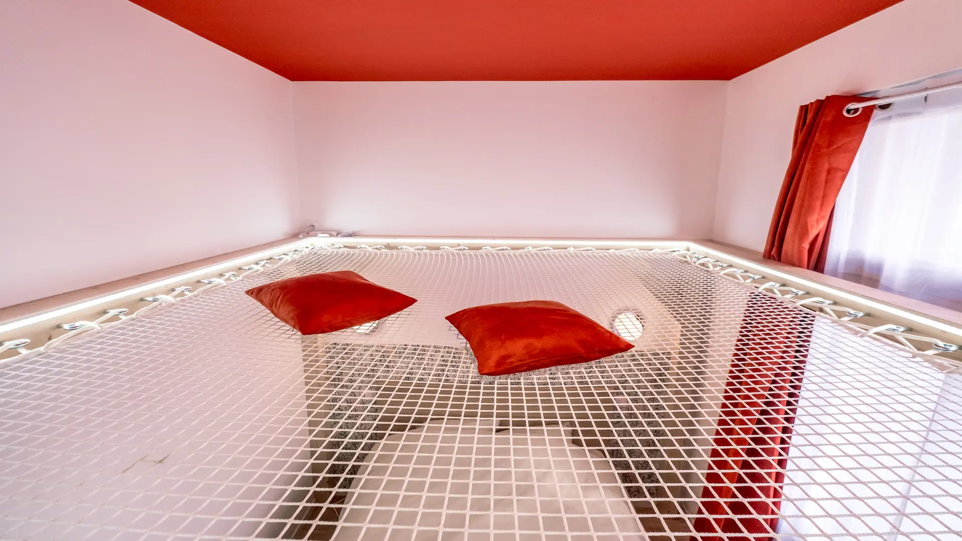 → 2 BEDS with 1 LARGE sofa bed with mattress + mattress topper and quality pillows