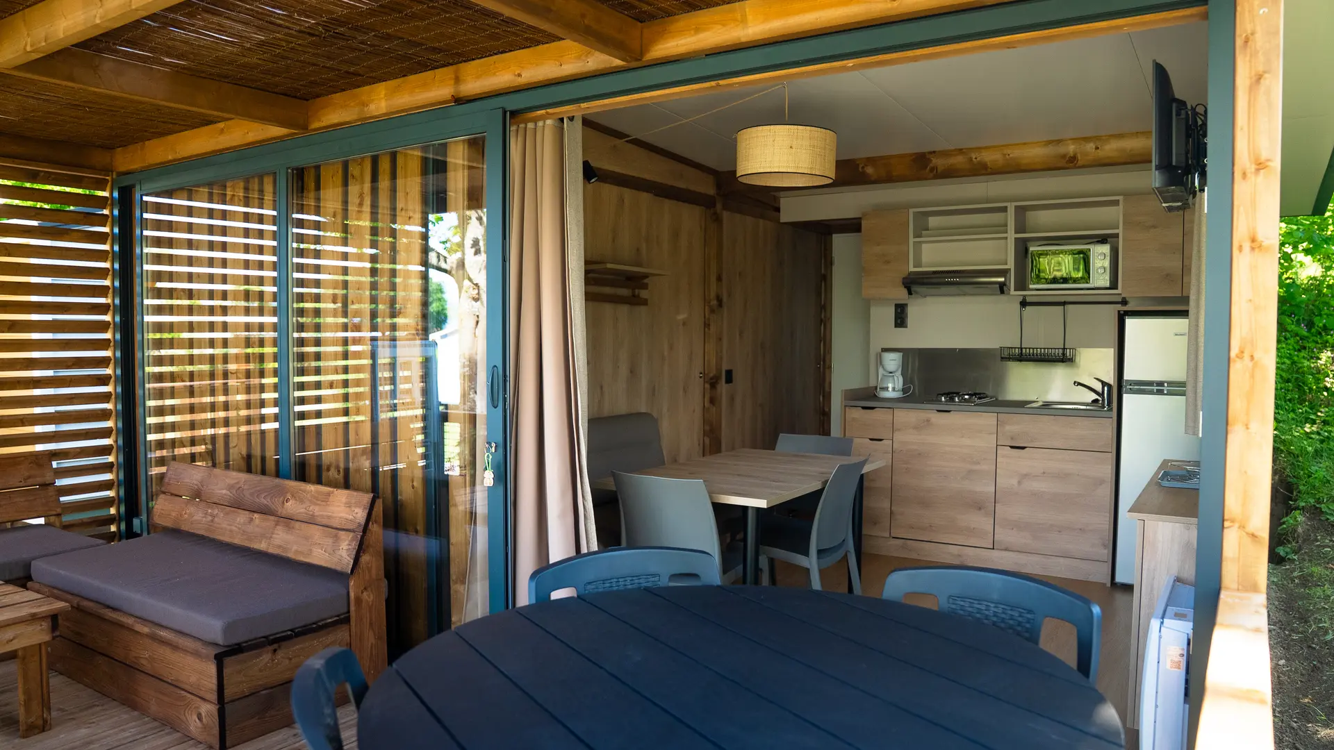 We offer 33 mobile homes for 1 to 6 people, including one suitable for people with reduced mobility, 1 trailer, 4 chalets, 1 hut all equipped (dishes, television, microwave, coffee maker, refrigerator...) and 61 caravan sites, camper, tents, motorcycles...... with water point and electrical connection nearby.