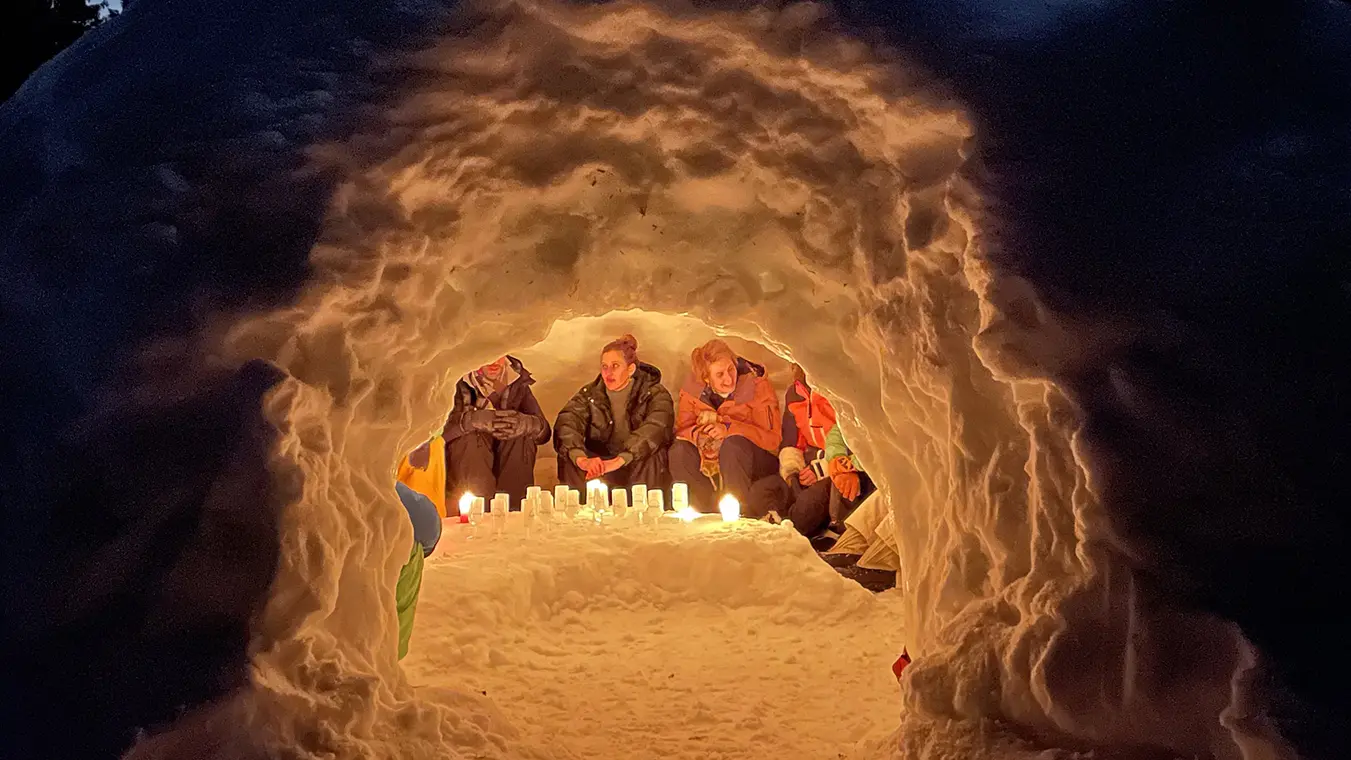 Al termine di una piacevole passeggiata con le racchette da neve al calar della sera, attraverso boschi e pascoli montani innevati, scoprirete il formidabile potere isolante della neve prendendo posto nel nostro igloo. È l'occasione perfetta per assaggiare i buoni prodotti regionali: vin brulé, cioccolata calda, formaggio e salumi locali. Un momento magico e gastronomico nel cuore della natura.