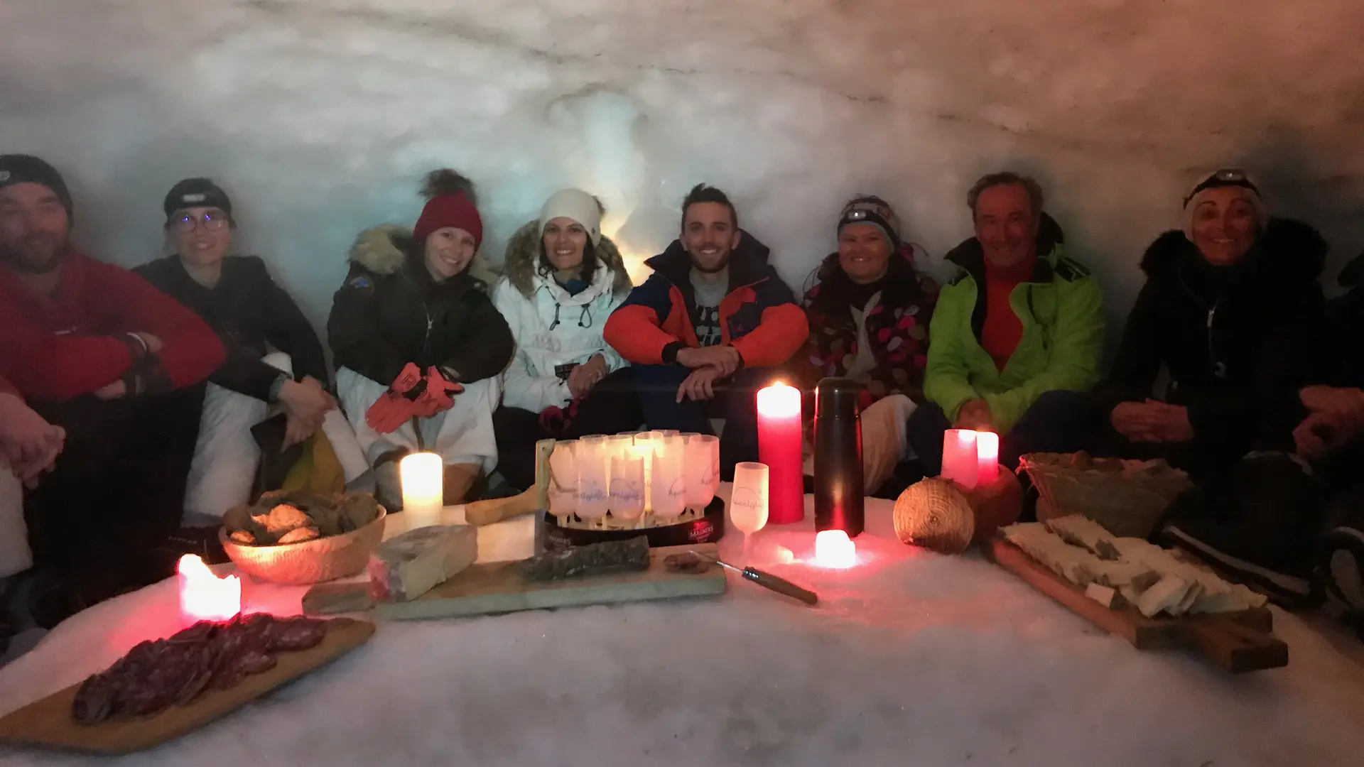 Venite a trascorrere un'esperienza indimenticabile e insolita, lasciatevi guidare con le racchette da neve fino all'igloo segreta per condividere un aperitivo conviviale, accompagnato da buoni prodotti locali.