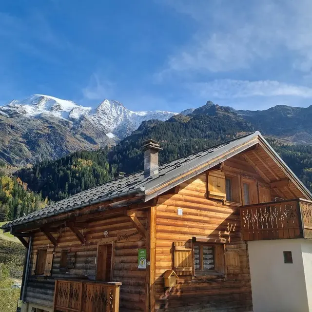 Tra Dômes de Miage e Mont Joly: bellissima vista panoramica sul massiccio del Monte Bianco, questo gîte di 80 m2 disposto su 2 livelli in una bella casa in stile chalet che comprende anche un altro gîte.