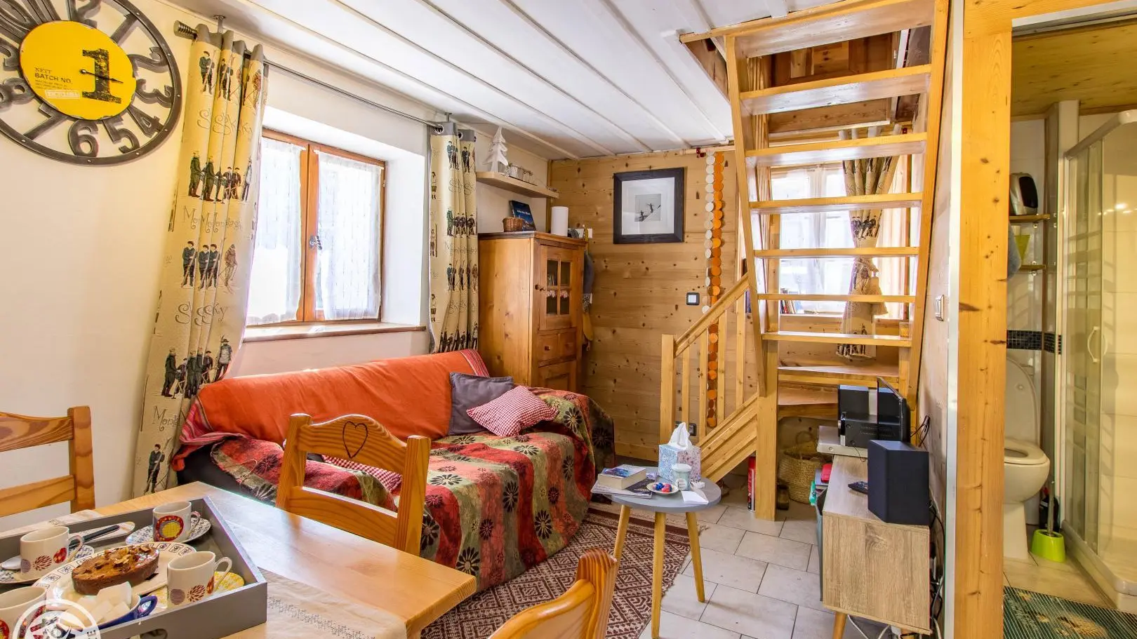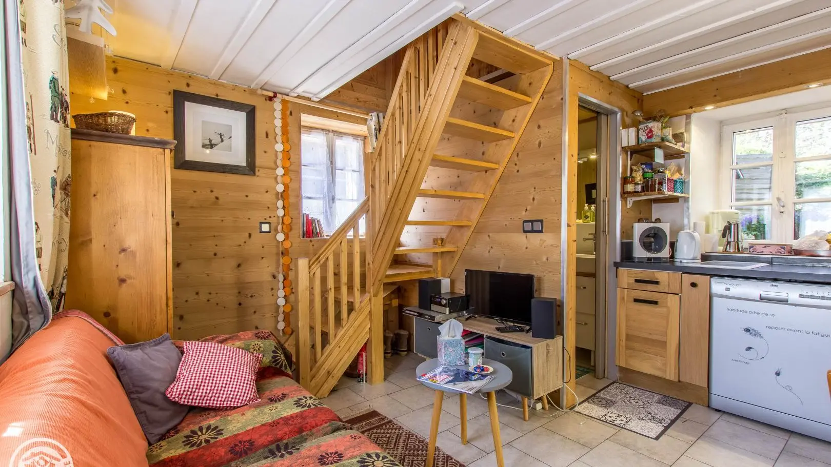 Piccolo chalet indipendente di 14 m2 Carrez Law (+ 10 m2 di camera da letto nel soppalco mansardato), situato a 3 km dal centro di Saint-Gervais nella piccola frazione di Bionnay.