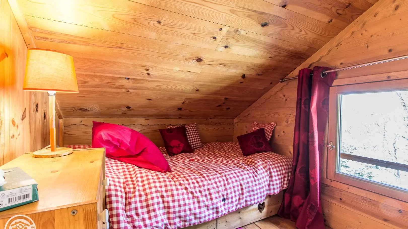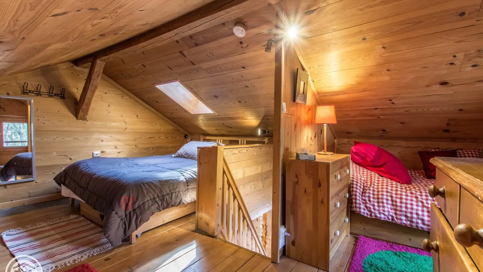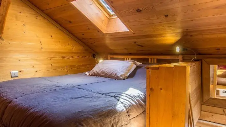 Al piano superiore: camera da letto soppalcata (1 letto 140x190 cm + 1 letto 90x190 cm). Altezza massima sotto il soffitto del soppalco: 1,72 m.