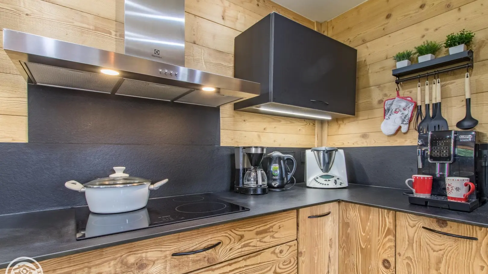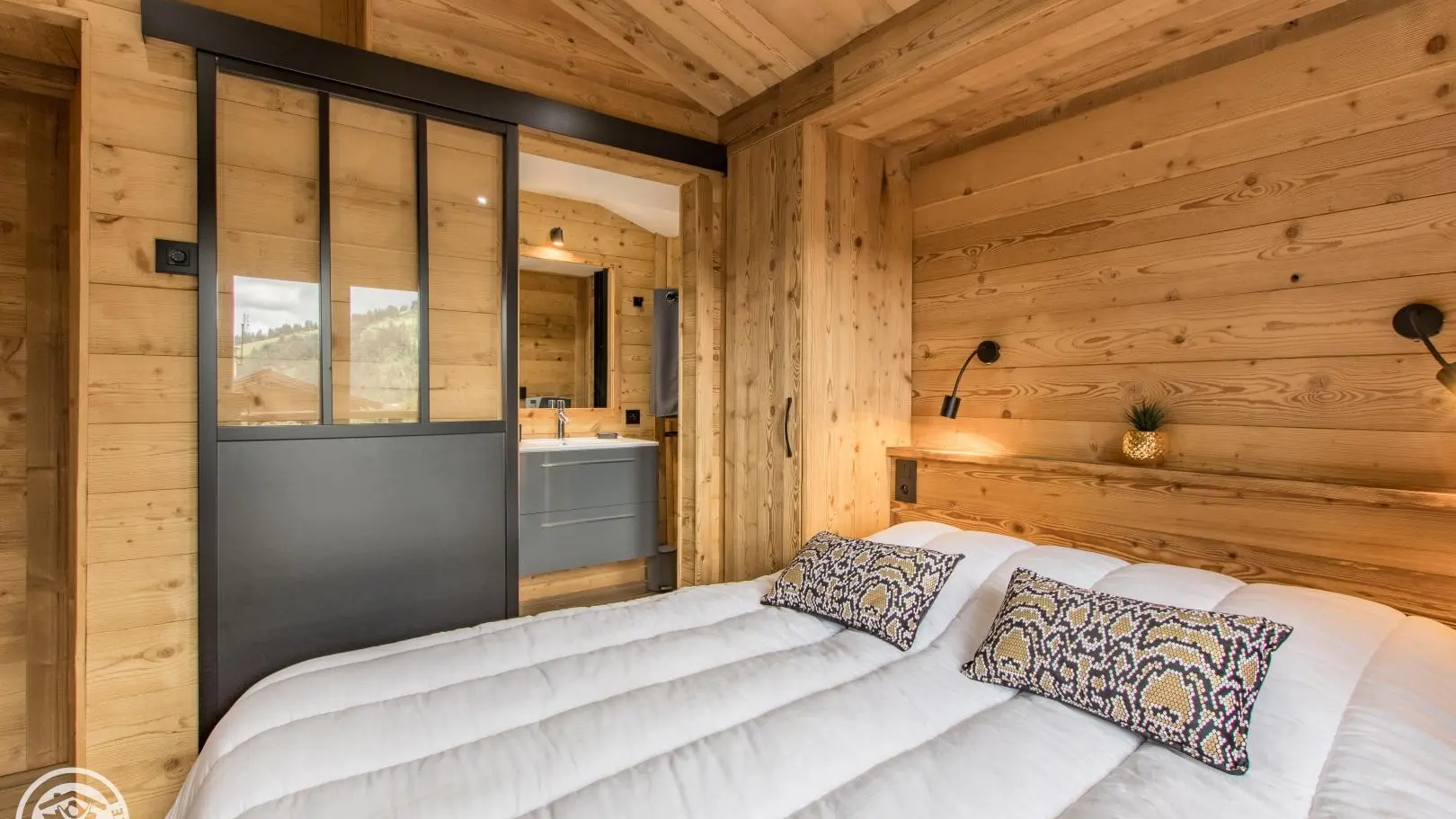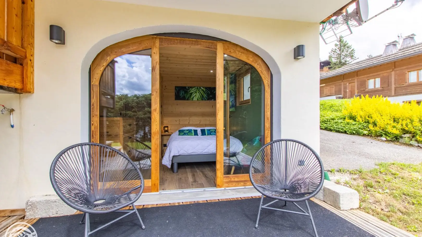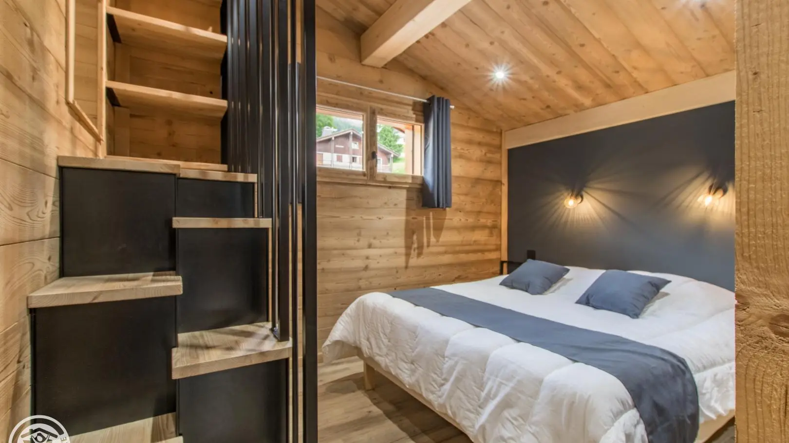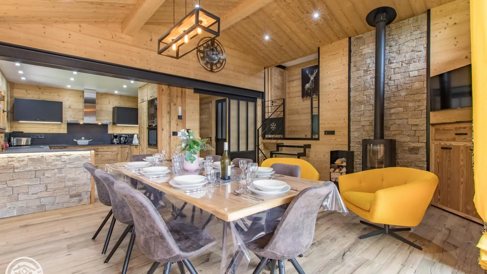 Chalet indipendente di 105 mq (+ 9 mq sottotetto) disposto su metà livelli, in una zona tranquilla sulle alture di La Clusaz. Atmosfera molto bella che mescola legno e moderno. Piano terra: ingresso, cucina attrezzata aperta sulla sala da pranzo (tavolo da pranzo, stufa a legna, 2 poltrone, televisore collegato), accesso alla bella terrazza-balcone. 1 WC separato con lavabo.