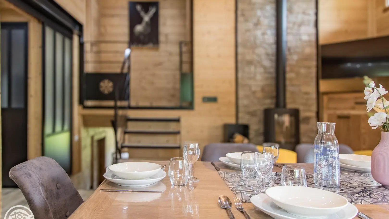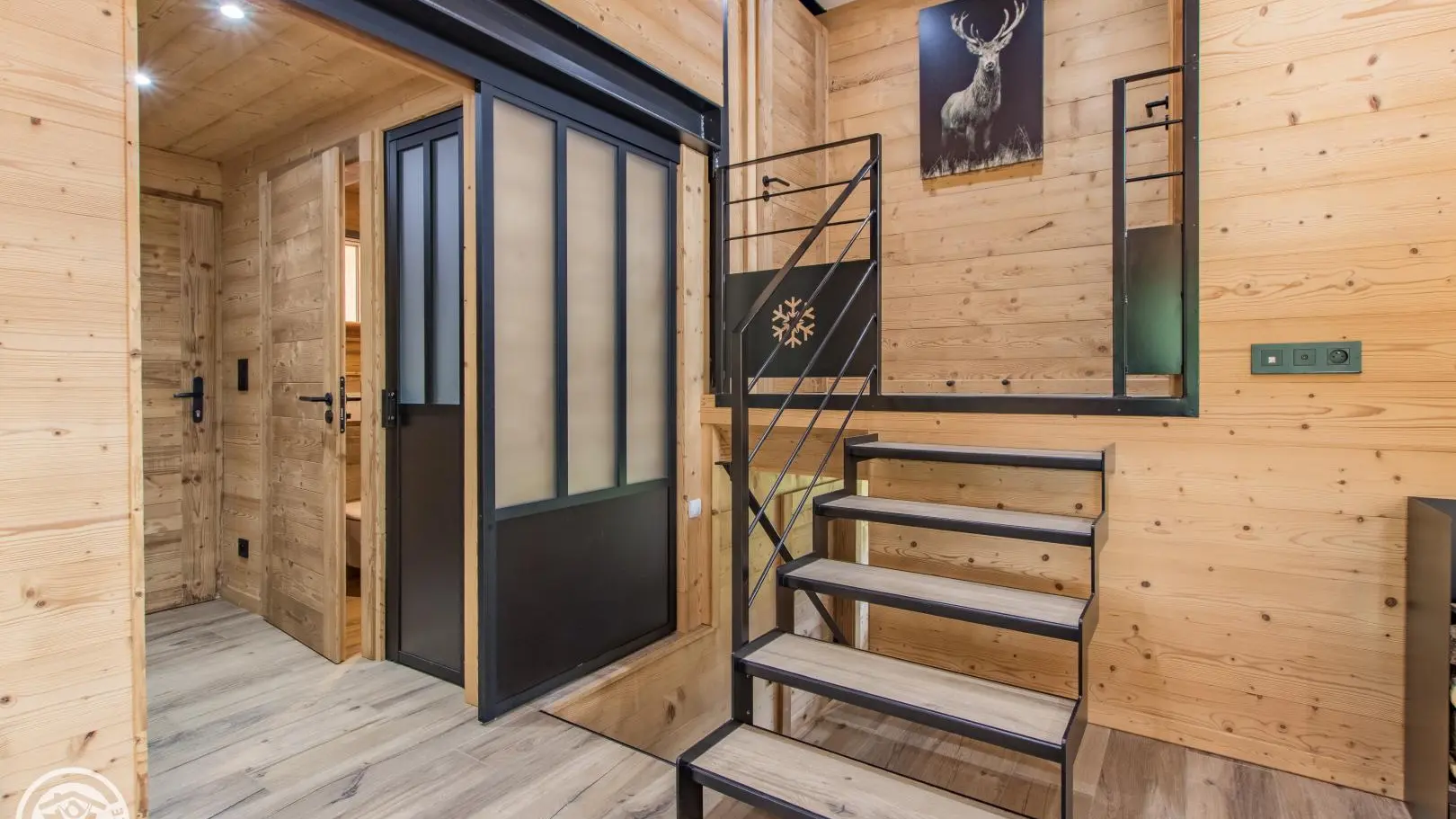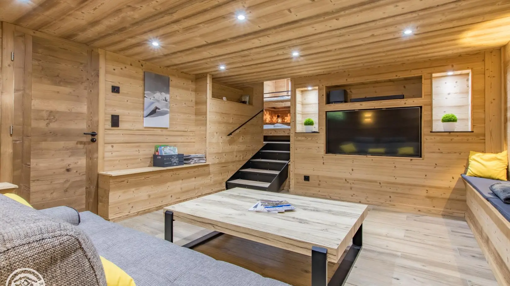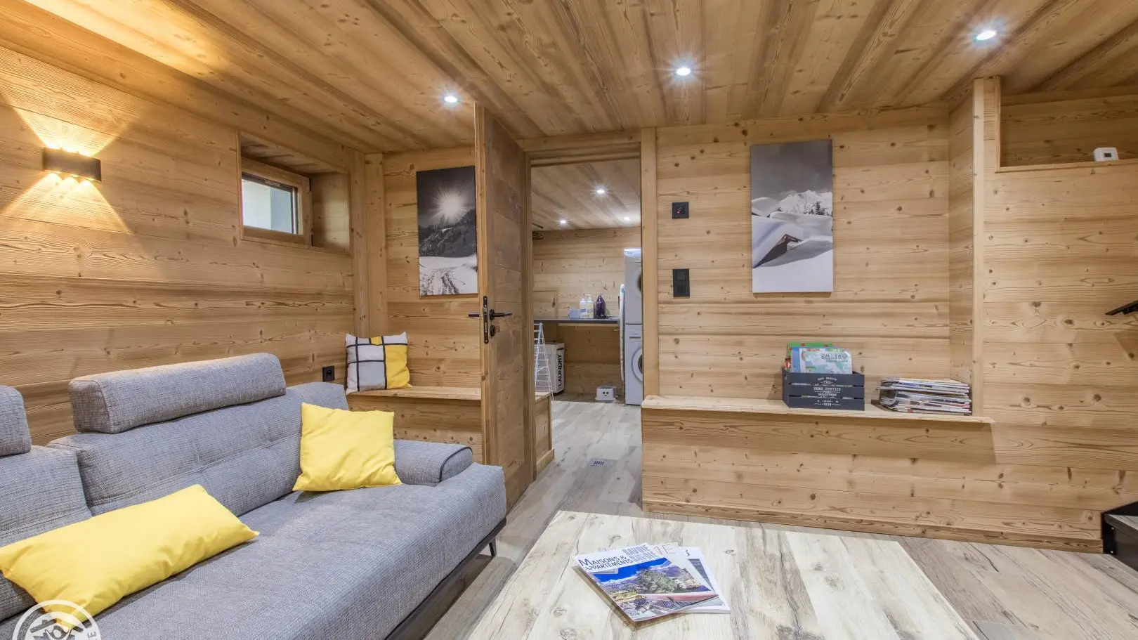 Chalet indipendente di 105 mq (+ 9 mq sottotetto) disposto su metà livelli, in una zona tranquilla sulle alture di La Clusaz. Atmosfera molto bella che mescola legno e moderno. Piano terra: ingresso, cucina attrezzata aperta sulla sala da pranzo (tavolo da pranzo, stufa a legna, 2 poltrone, televisore collegato), accesso alla bella terrazza-balcone. 1 WC separato con lavabo.