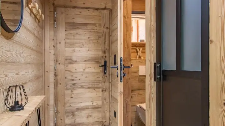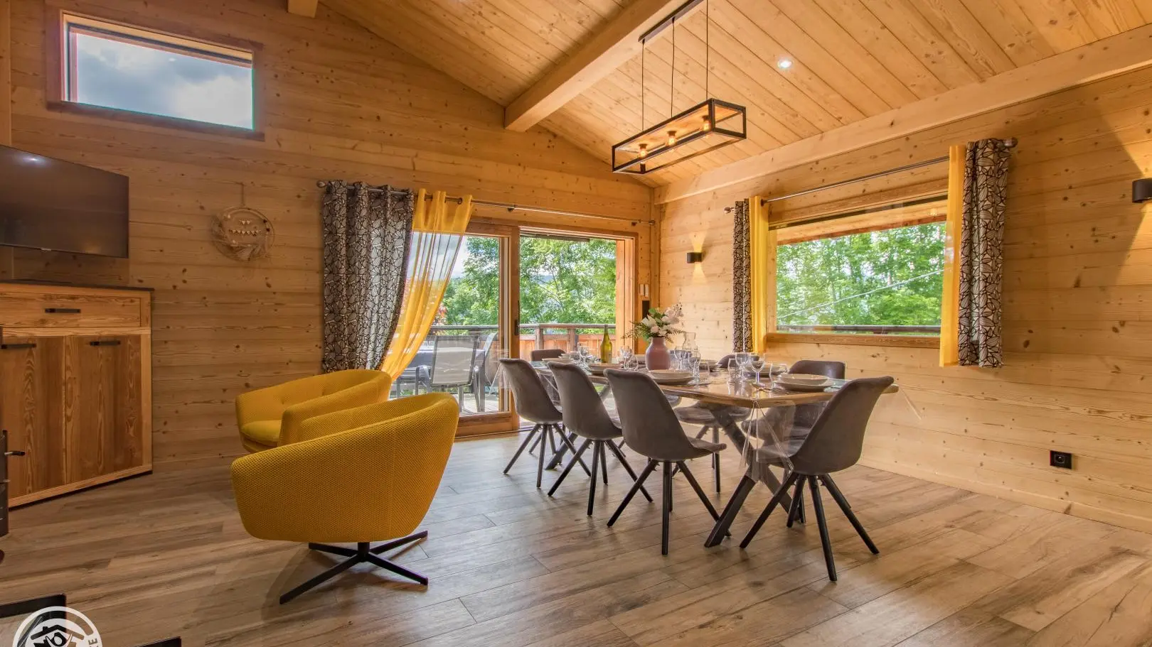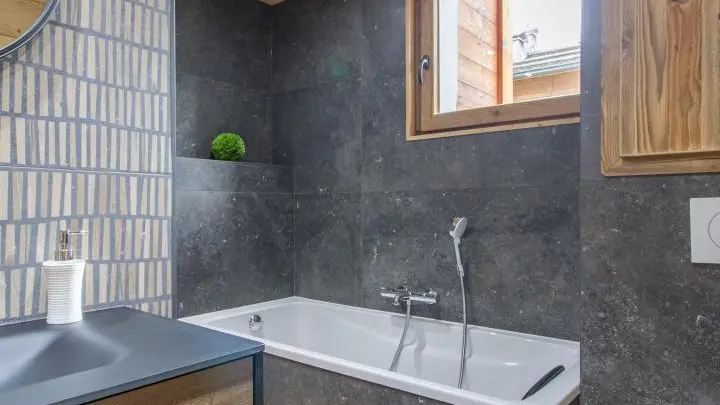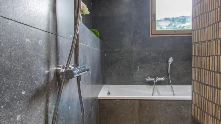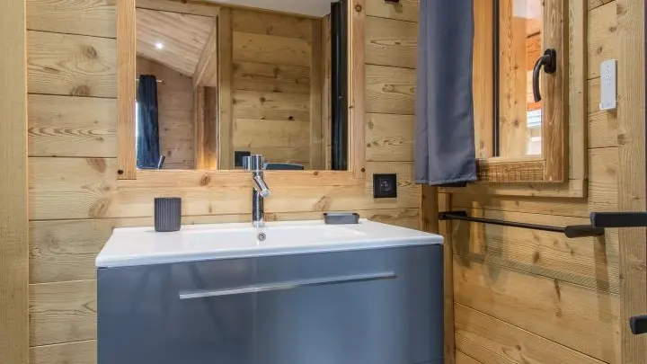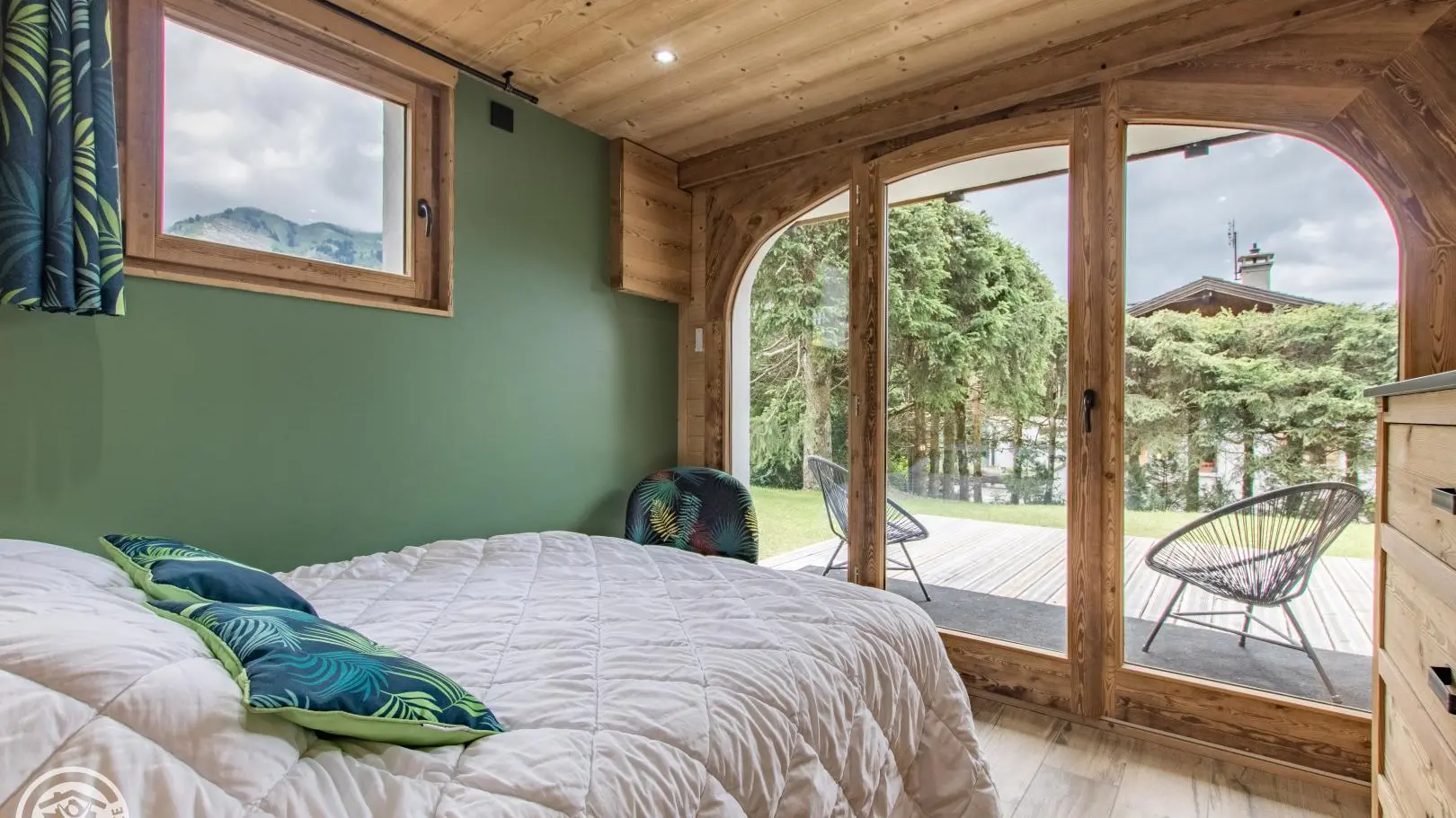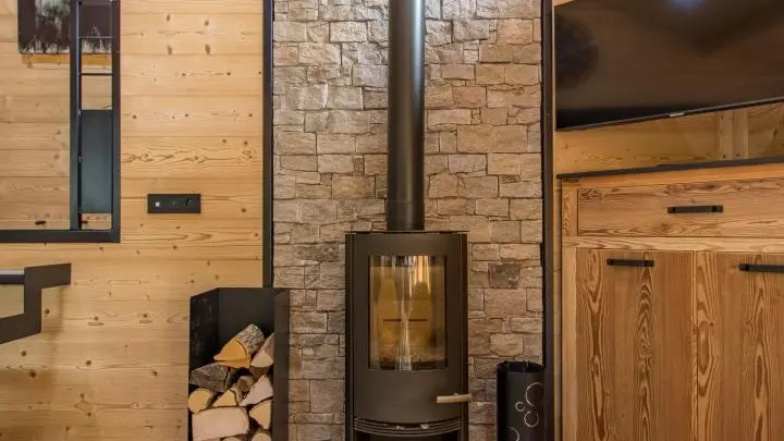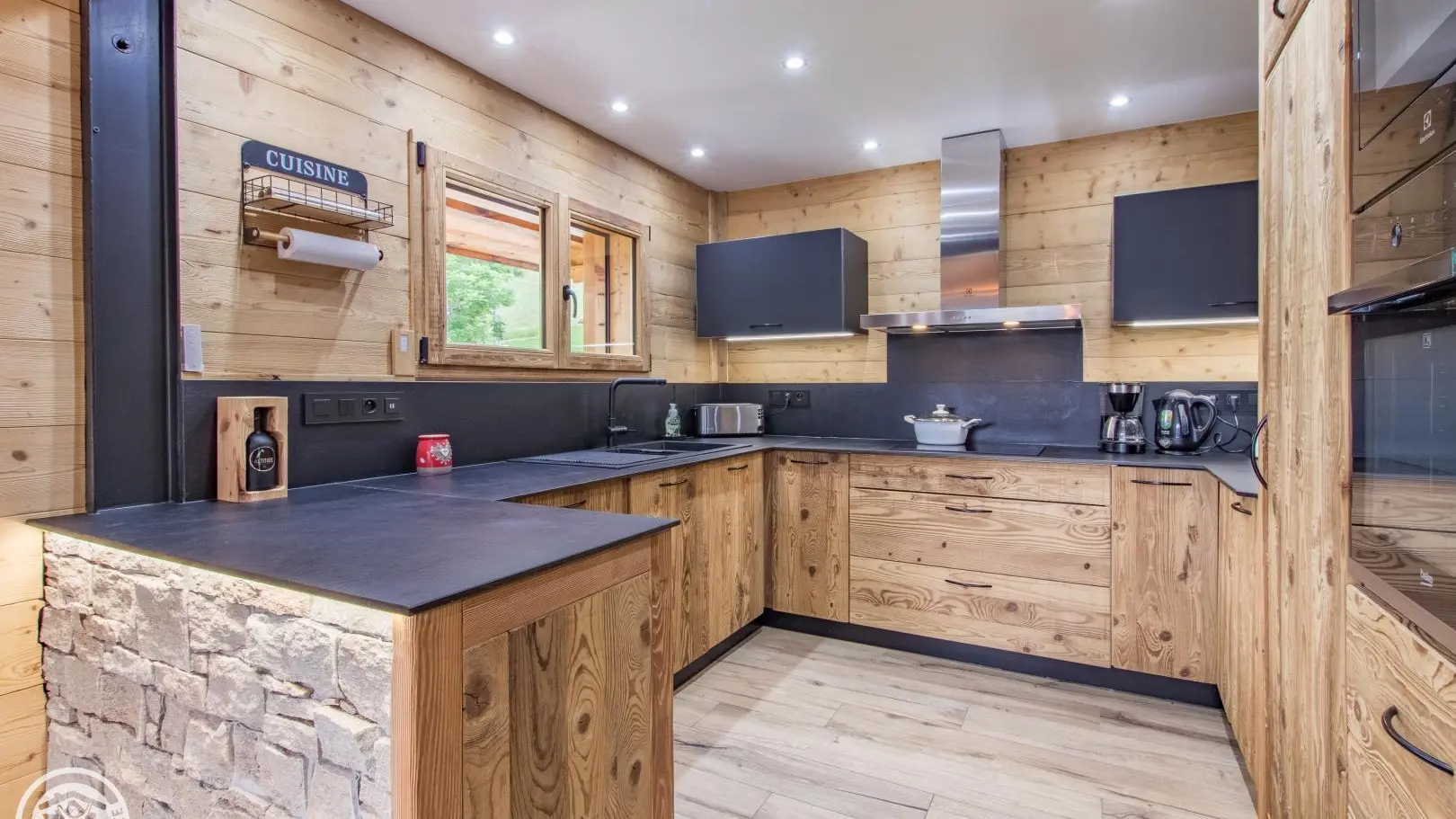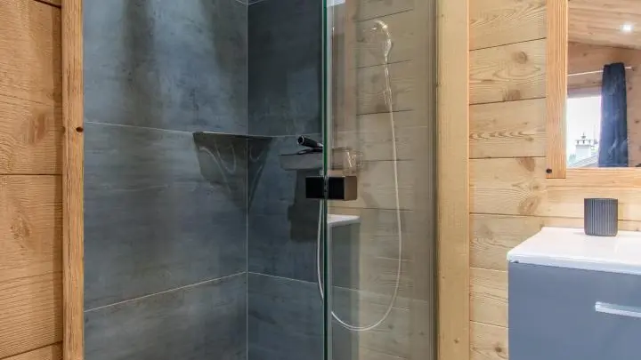 Chalet indipendente di 105 mq (+ 9 mq sottotetto) disposto su metà livelli, in una zona tranquilla sulle alture di La Clusaz. Atmosfera molto bella che mescola legno e moderno. Piano terra: ingresso, cucina attrezzata aperta sulla sala da pranzo (tavolo da pranzo, stufa a legna, 2 poltrone, televisore collegato), accesso alla bella terrazza-balcone. 1 WC separato con lavabo.