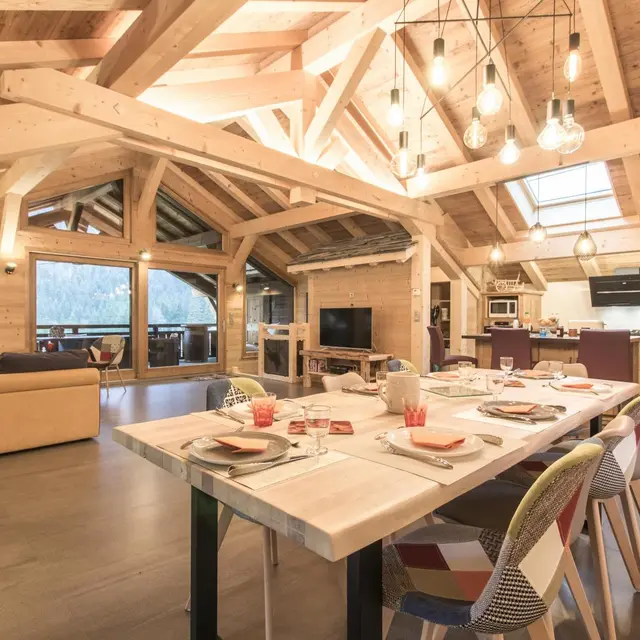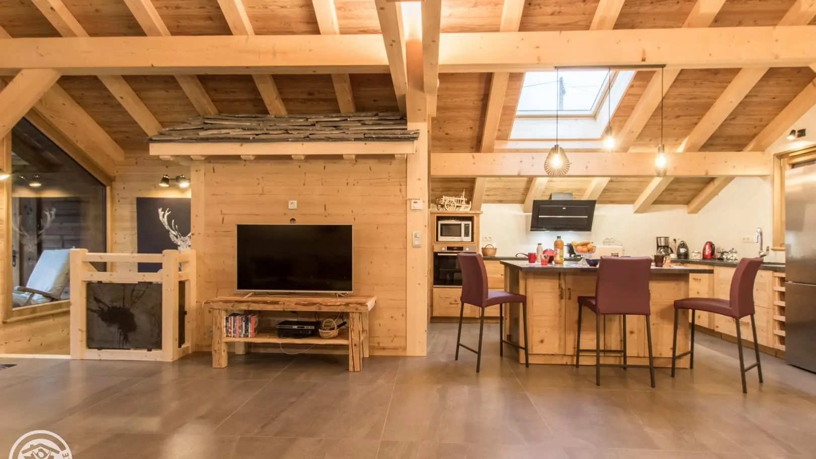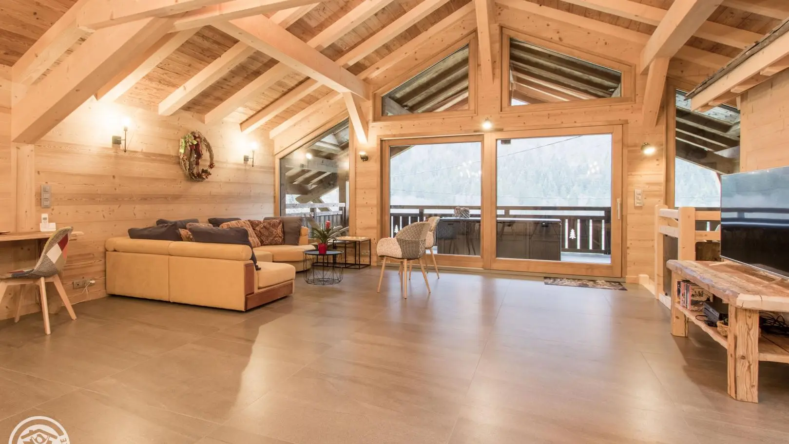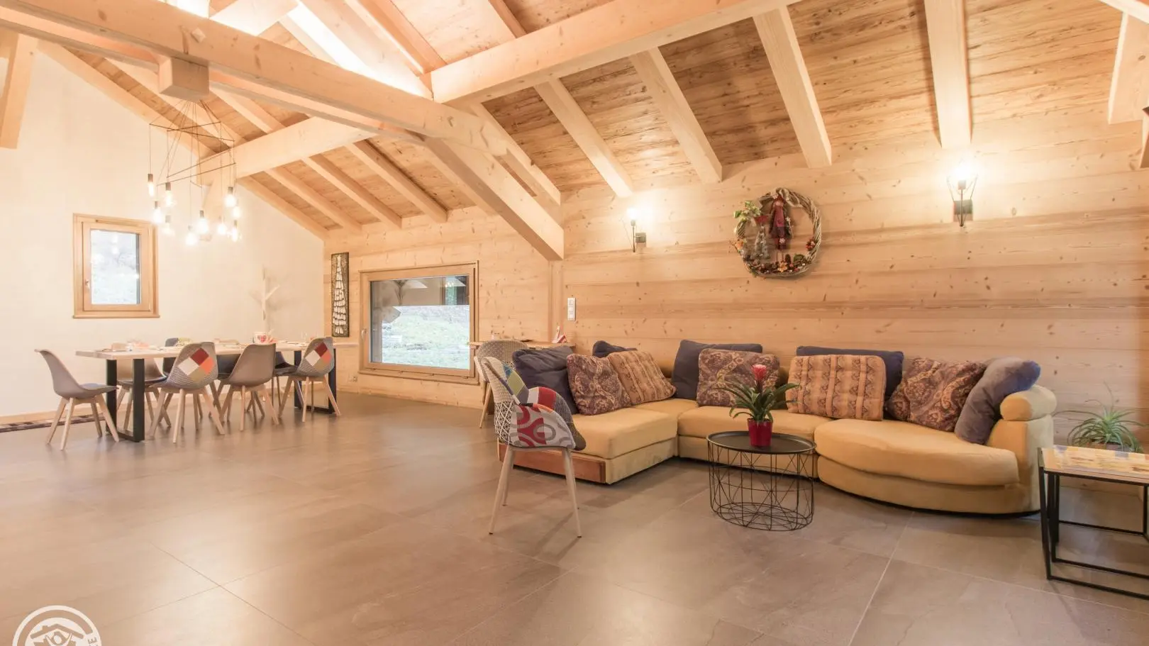 Ingresso dal piano terra o direttamente nel soggiorno al 1 ° piano dello chalet.