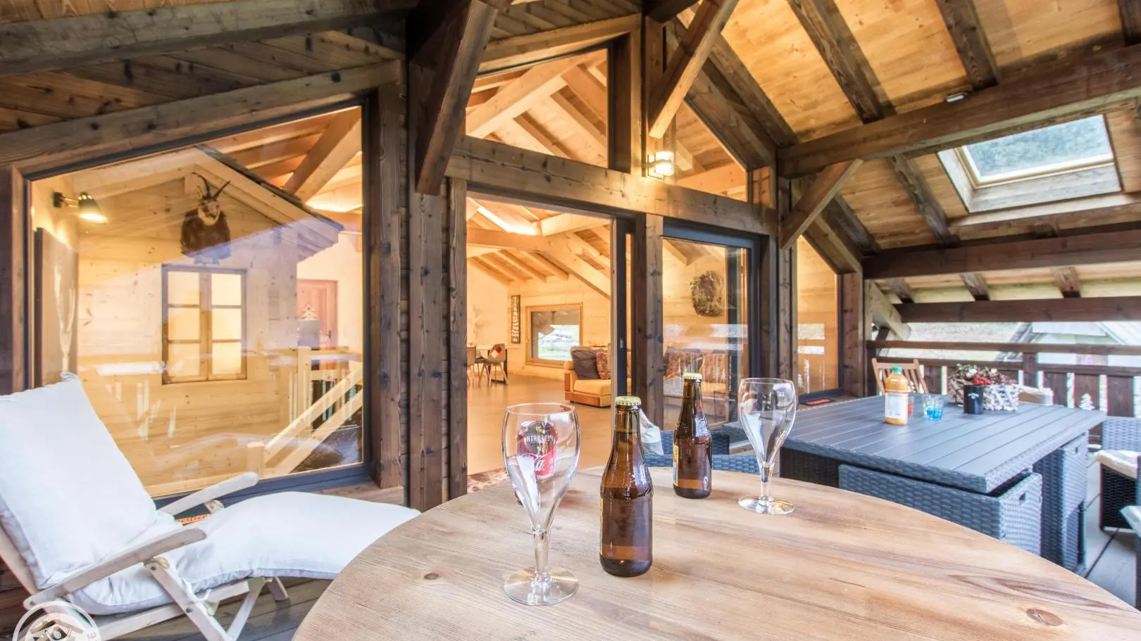Terrazza coperta con mobili da giardino, sdraio. Barbecue nell'area esterna. Deposito sci / lavanderia con lavatrice.
