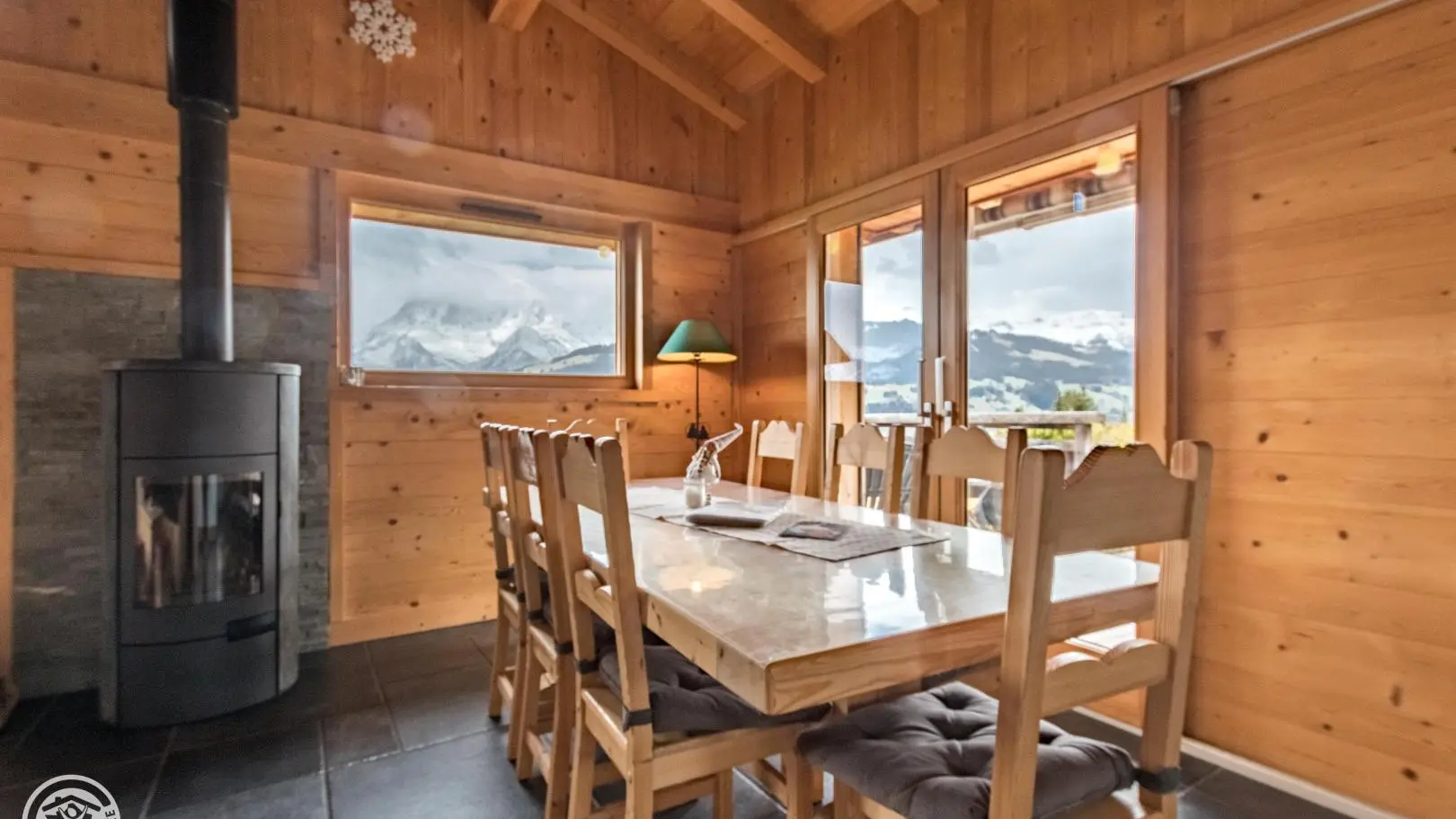 Superbo panorama sul Mont Blanc gamma per questo chalet indipendente permanente situato su 2 piani (130 mq). Piani presso l'accesso di 1 ° livello: cucina aperta al soggiorno (TV, legna stufa), CH1 (1 letto 160 x 200 cm), bagno (doccia), toilette. Al livello inferiore: CH2: (2 letti 90), CH3 (2 letti 90), CH4 (1 letto 160 x 200 cm), bagno (vasca angolare + doccia), wc, lavanderia, wellness area con sauna e doccia. Terrazza in legno con mobili (vista Mont Blanc), giardino, garage. Biancheria fornita e letti fatti all'arrivo. canali consigliati in inverno. Dominio di Combloux ascensori a 200 m. Centro della località 3 km (Biotopo acqua con sauna, jacuzzi). Megève 5 km.