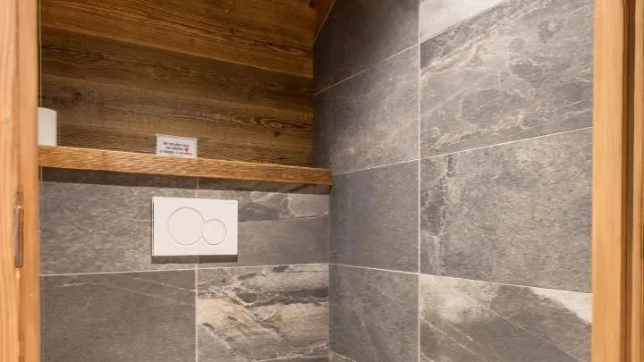 Alloggio di 102 m² (+ 7 m² sottotetto) allestito in un grande chalet composto da 2 affitti (2° alloggio al piano giardino etichettato Gîtes de France con riferimento 136184). Ingresso comune sul retro dello chalet. Accesso e parcheggio direttamente sulla parte superiore dello chalet.