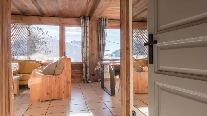 Appartamento situato al piano giardino (parte inferiore dello chalet), accesso tramite scala interna.