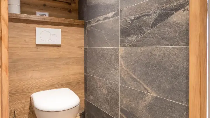 Ingresso comune sul retro dello chalet. Accesso e parcheggio direttamente sulla parte superiore dello chalet.