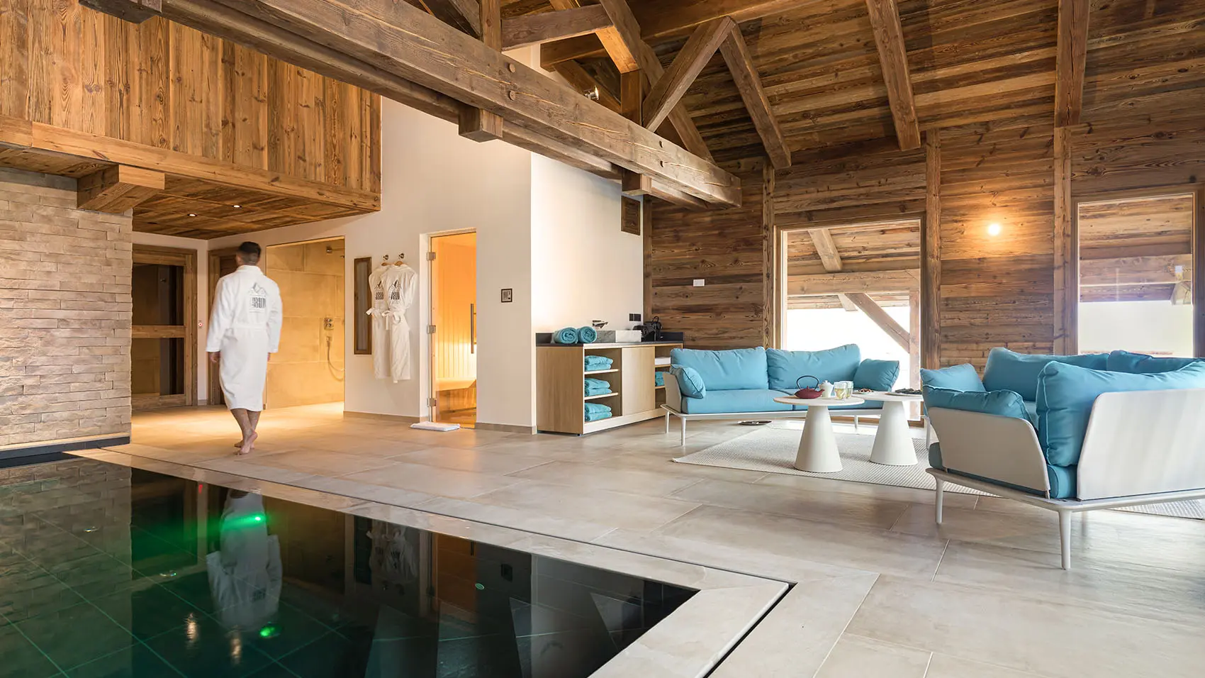 I nostri cottage si affacciano sulla campagna, dove potrete godere dell'aria fresca e della bellezza dei dintorni. Rilassatevi sulla terrazza ammirando la vista del Monte Bianco, oppure fate una pausa nella nostra area relax con piscina interna riscaldata e sauna e lasciatevi alle spalle le preoccupazioni della vita quotidiana.
