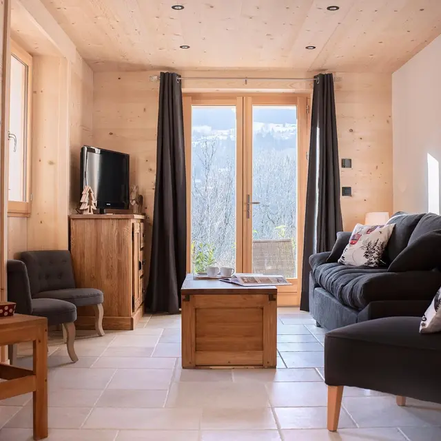 Gîte di 70 mq al piano terra - su unico livello - di un'antica casa colonica completamente ristrutturata in stile chalet, comprendente anche l'alloggio dei proprietari (al piano superiore), oltre ad un altro gîte.
