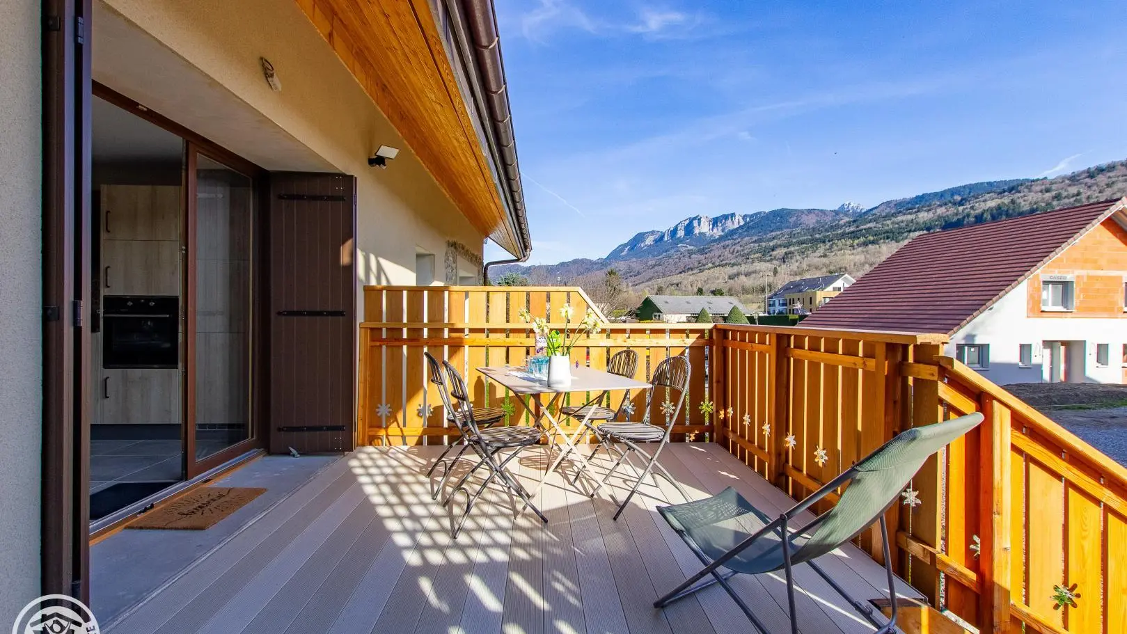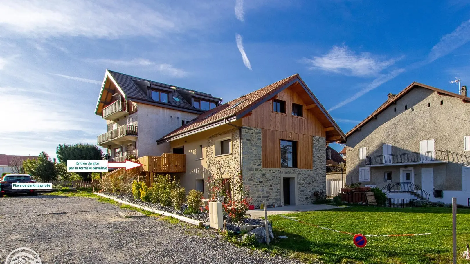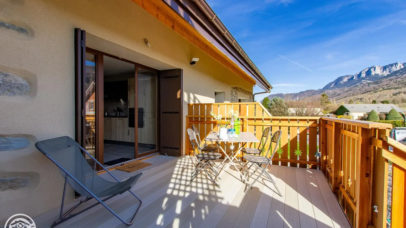 Ingresso indipendente. Accesso tramite scala esterna direttamente sul bellissimo balcone-terrazzo in legno del gîte.