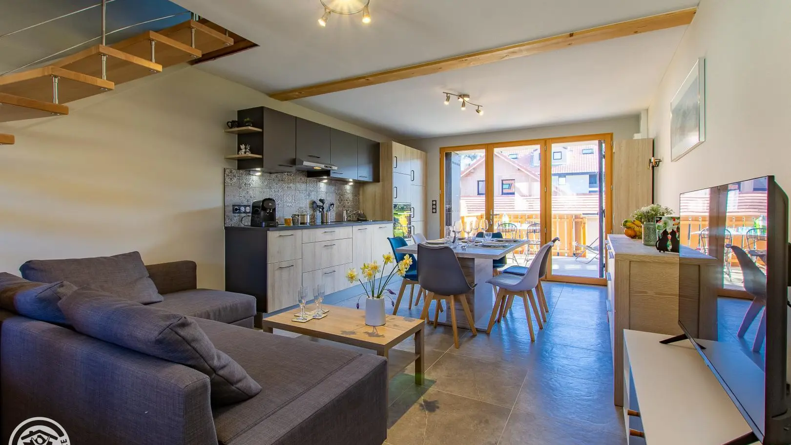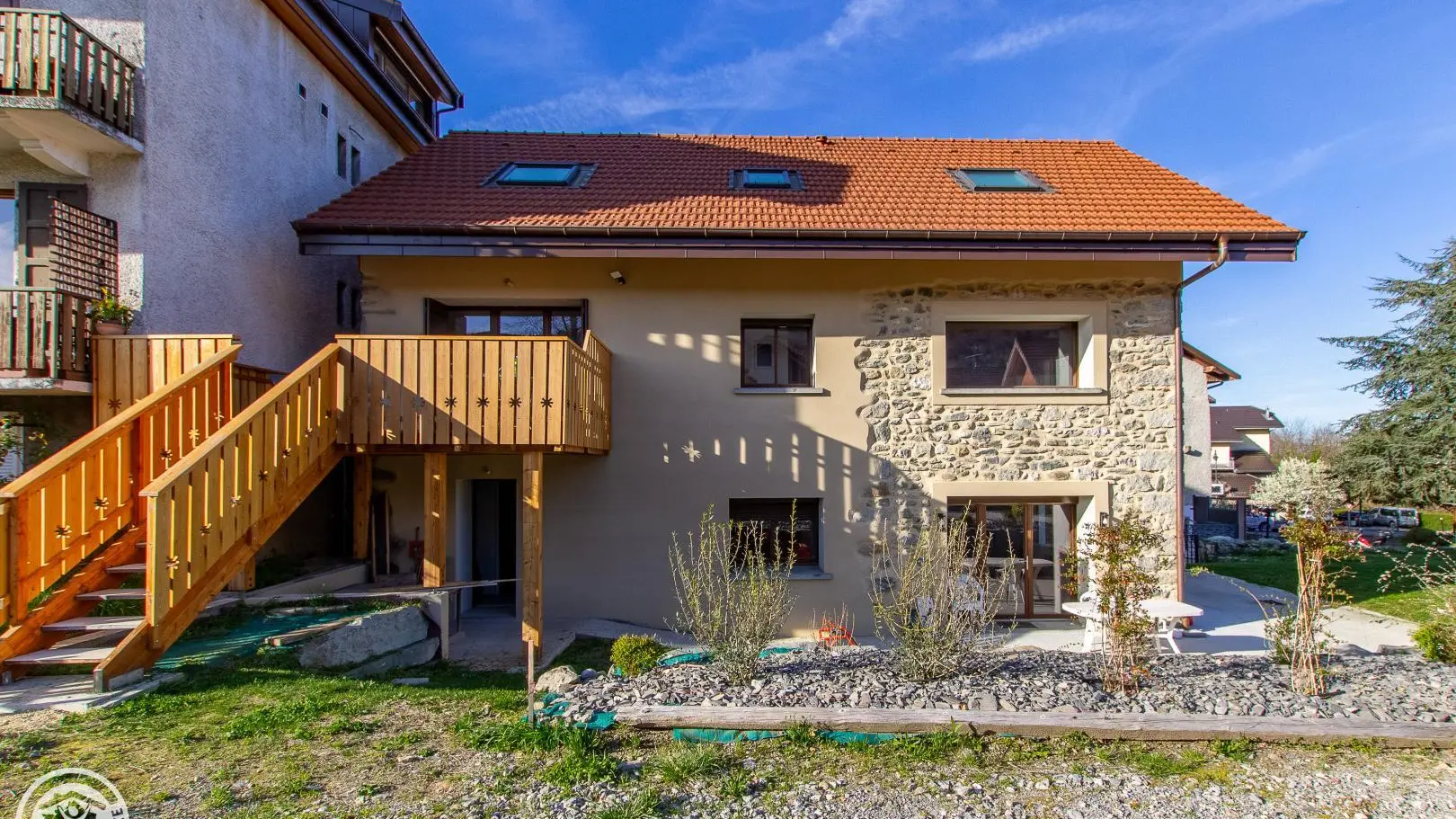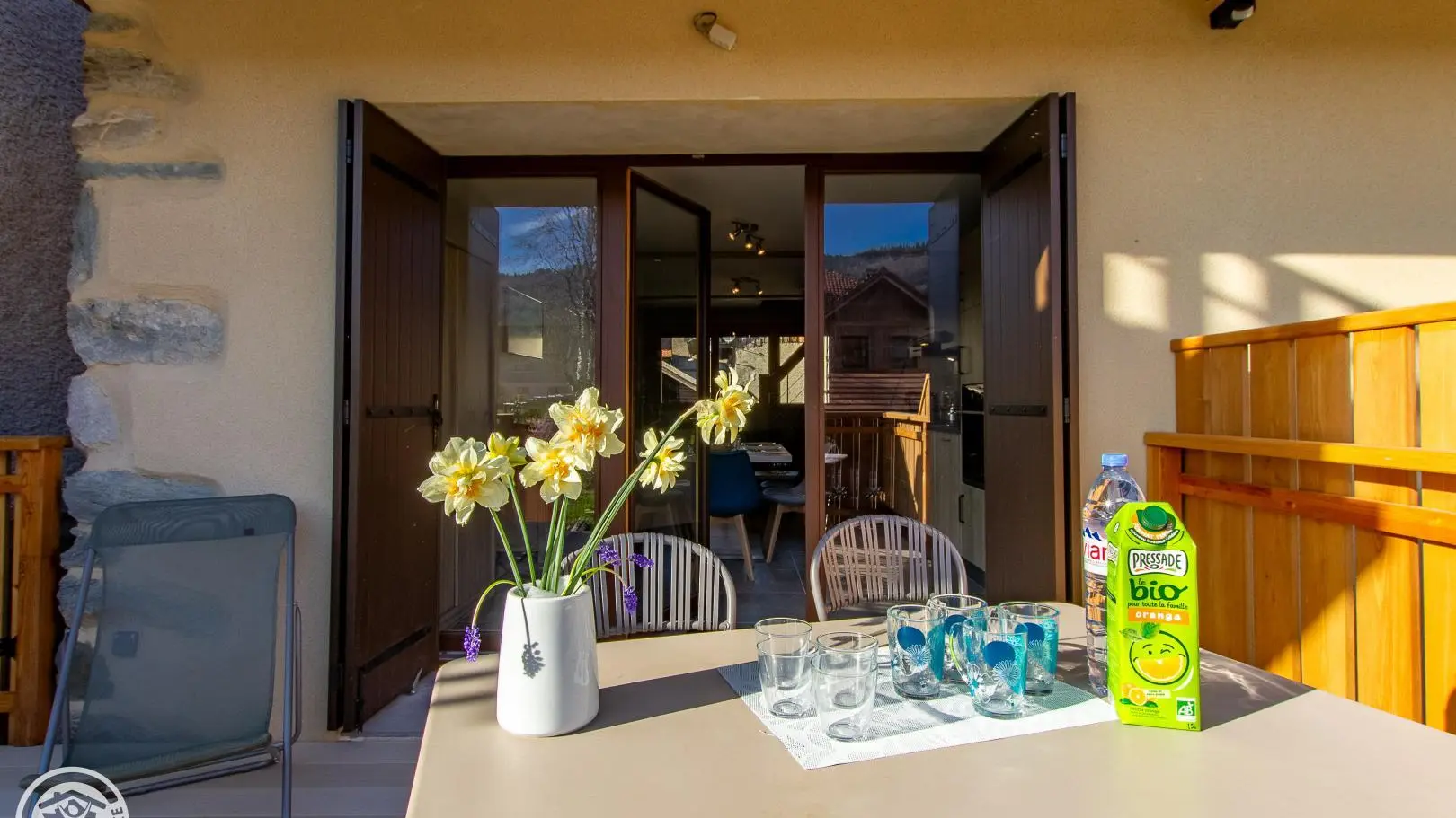 Ingresso indipendente. Accesso tramite scala esterna direttamente sul bellissimo balcone-terrazzo in legno del gîte.
