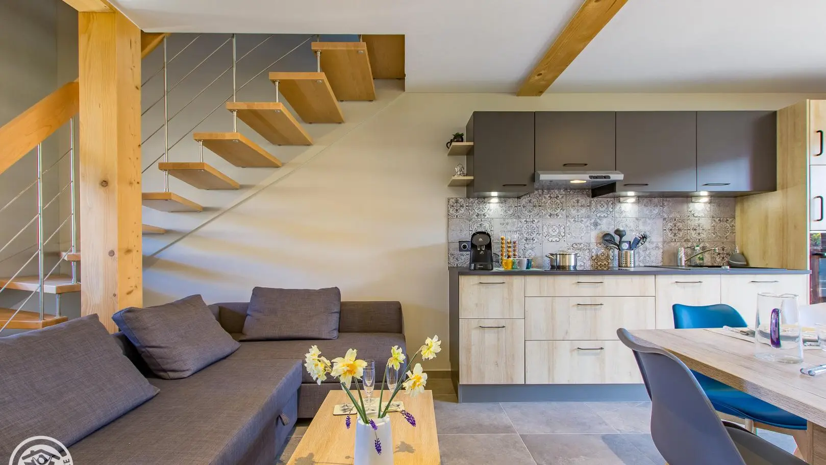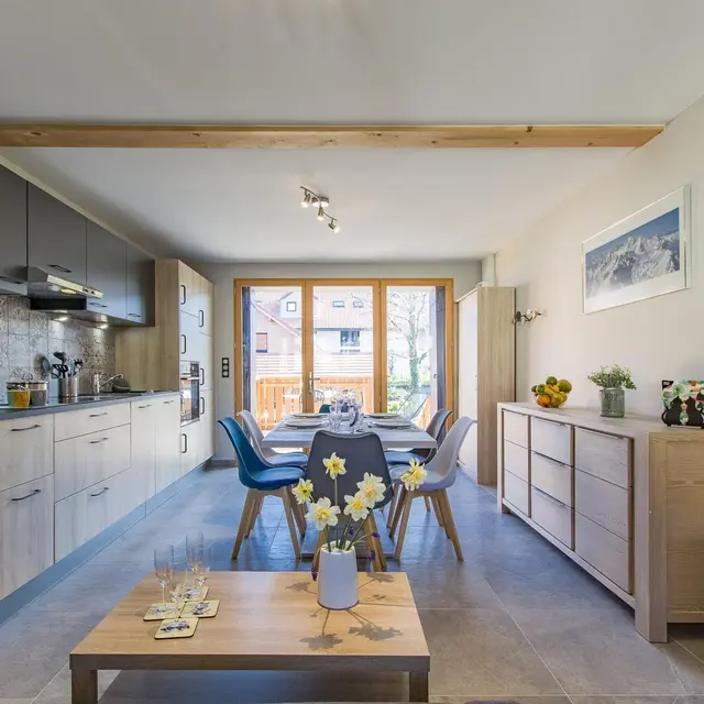 Rustico di 50 mq + 13 mq mansarda, disposto su 2 livelli (1° e 2° piano) di un vecchio fienile completamente restaurato comprendente anche un altro appartamento (abitazione secondaria dei proprietari). Posizione nel cuore del paese, vicino a piccoli negozi (panetteria, macelleria e ristoranti).