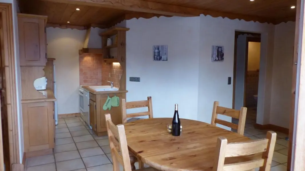 Alloggio di 55 m2 al piano terra dello chalet dei proprietari (al piano superiore). Accesso indipendente: cucina attrezzata aperta sul soggiorno (divano, zona pranzo), camera da letto 1 (2 letti a castello 90 cm), camera da letto 2 (1 letto 140x190 cm). Bagno con doccia, wc separato. Terrazza privata di fronte al Monte Bianco con mobili e barbecue + sala relax. Possibilità di noleggio lenzuola. Riduzione per soggiorno 3 settimane - 10%. Località per famiglie Cordon a 2 km (navetta gratuita 100 m in inverno - al villaggio o alle piste di Cordon). Stazione di Combloux 5 km, Megève 10 km. Molte escursioni nelle vicinanze. Lago biotopo di Combloux a 5 km, 2 centri ricreativi nelle vicinanze (Sallanches e Passy).