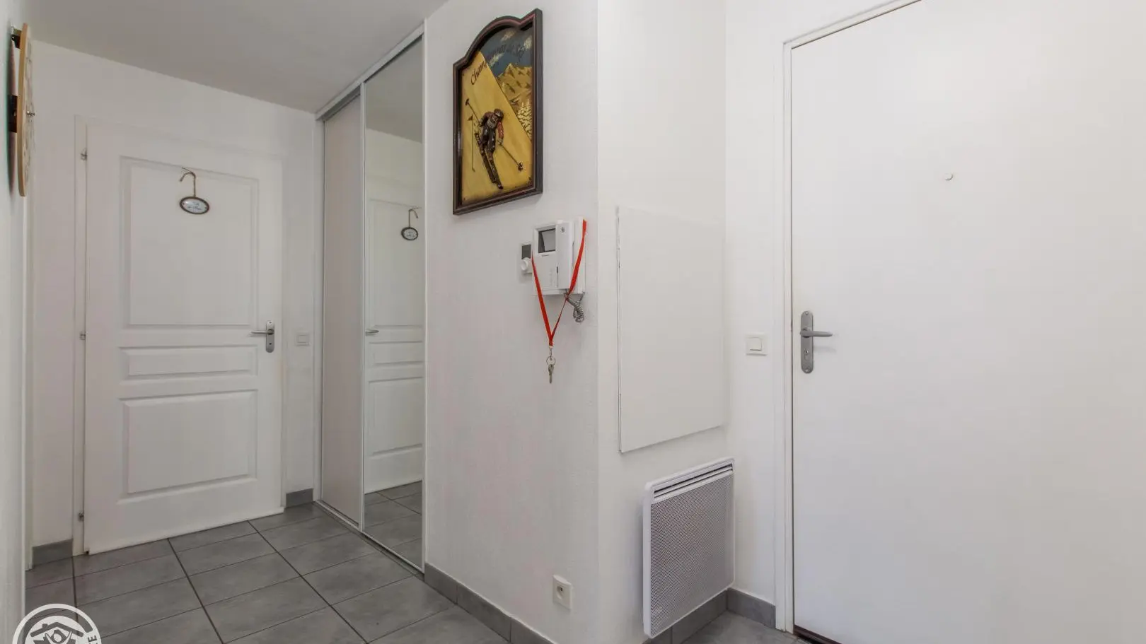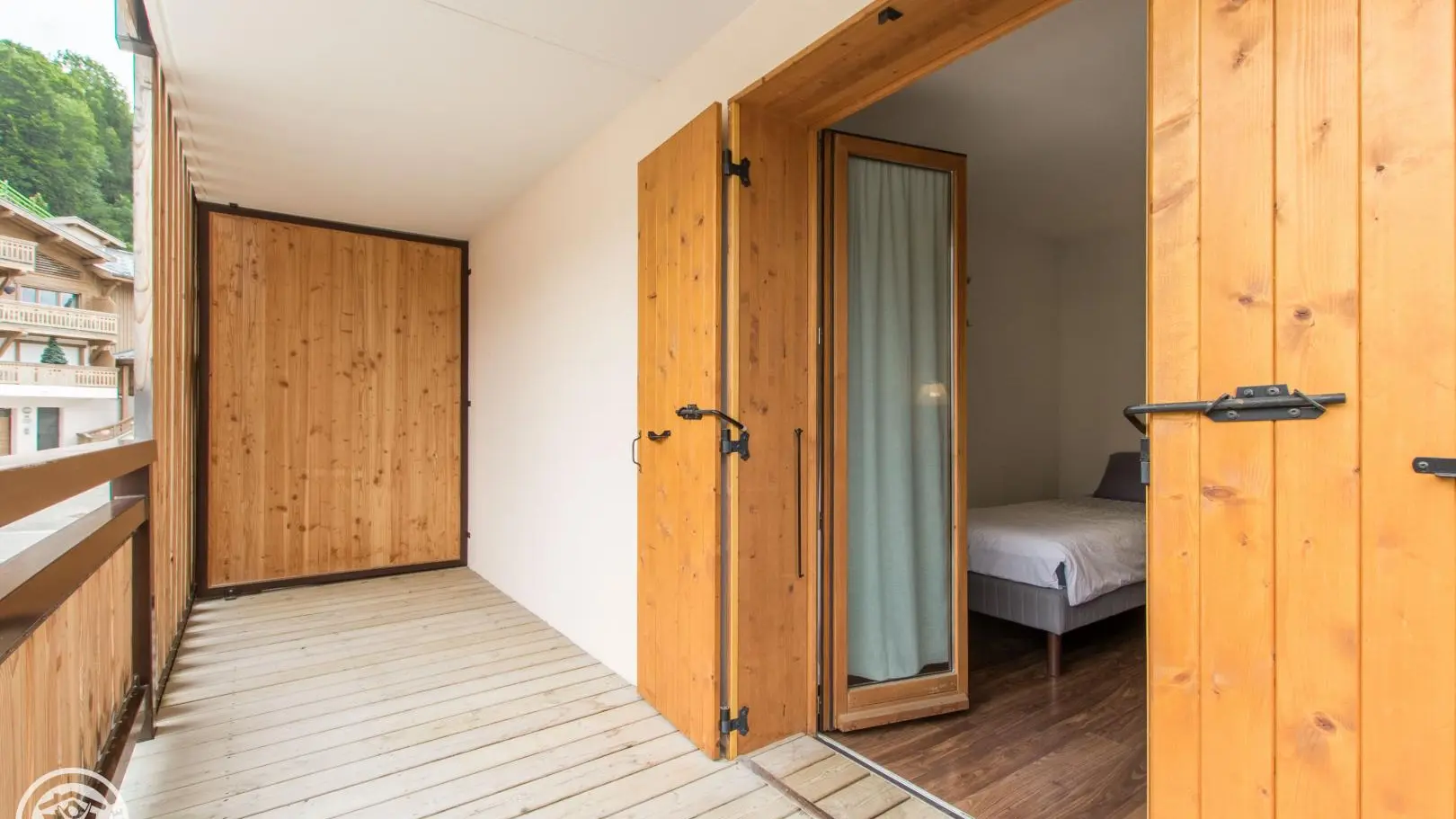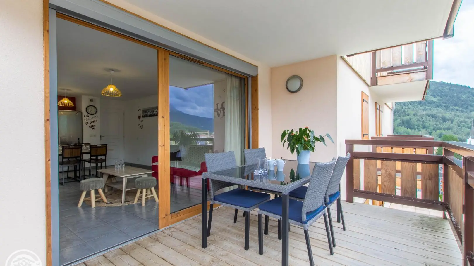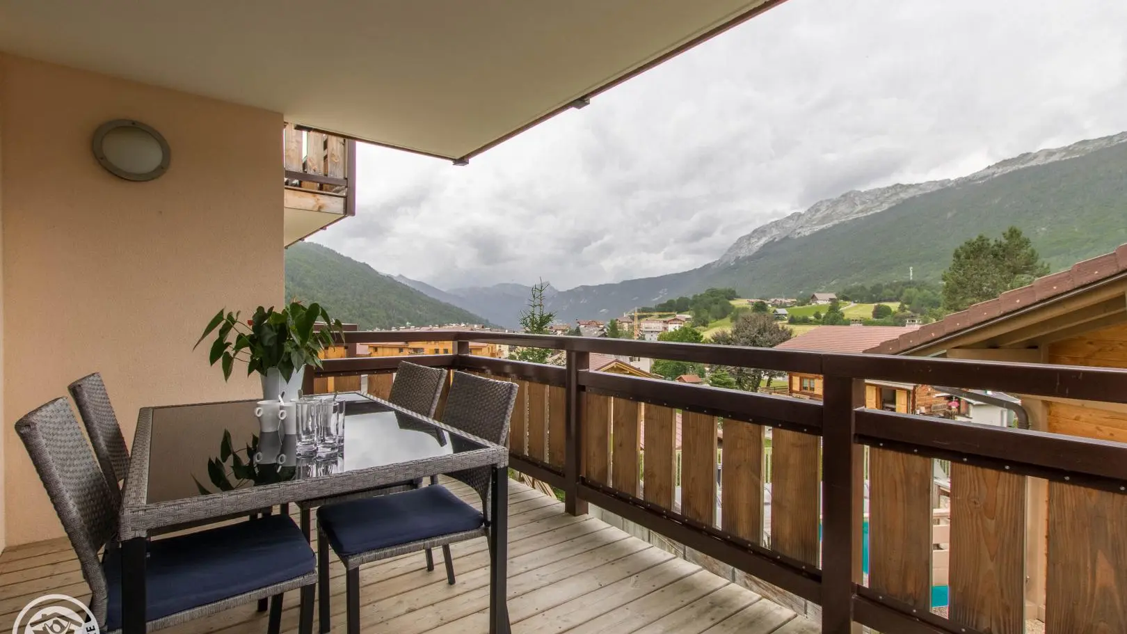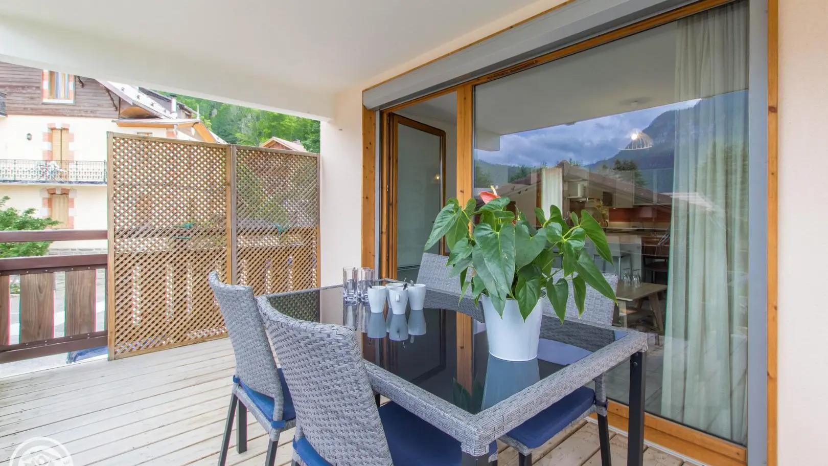 2 balconi: 1 ampio balcone (10 m²) accessibile a ovest dal soggiorno con mobili da giardino, plancha, vista sulle montagne e 1 altro balcone (8,5 m²) esposto a nord accessibile dalla 2a camera da letto.