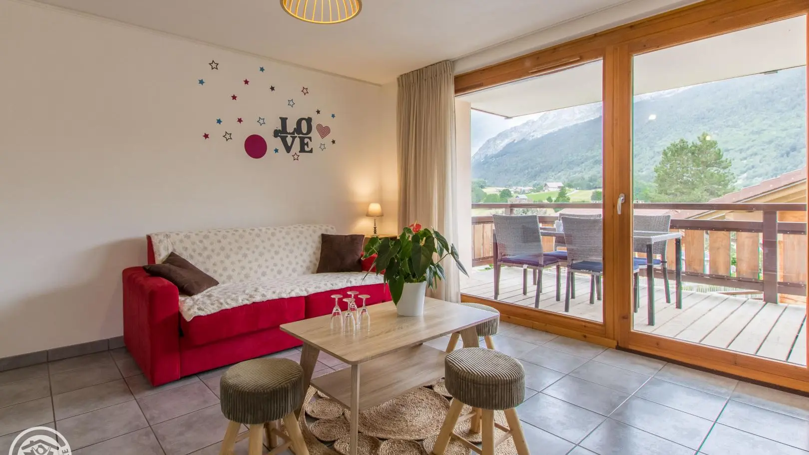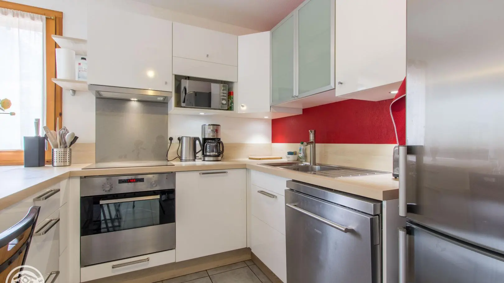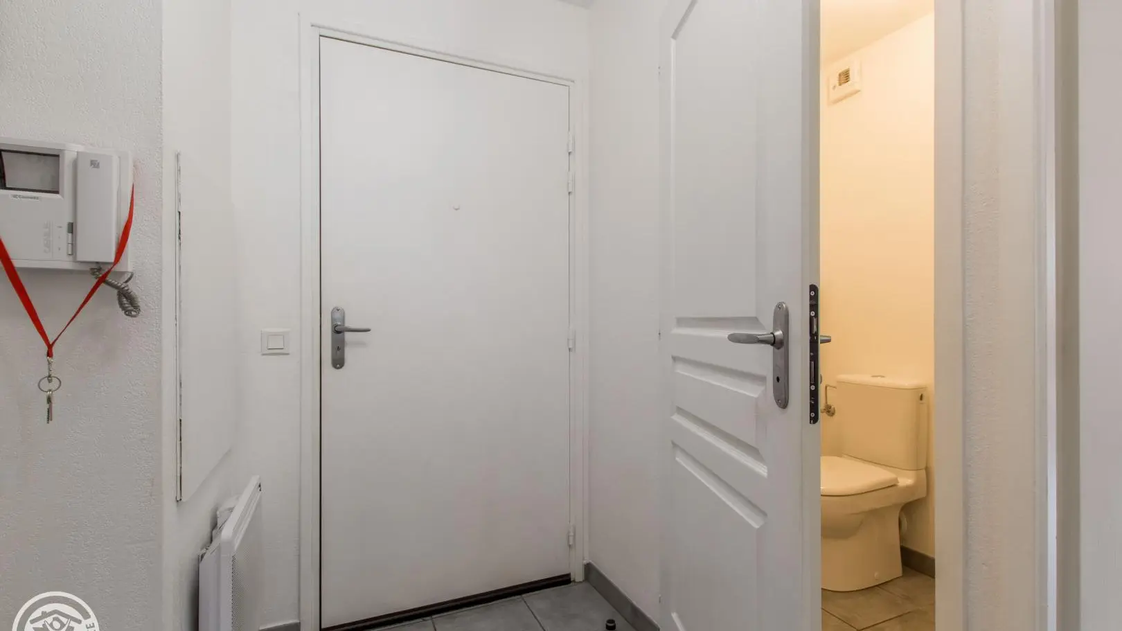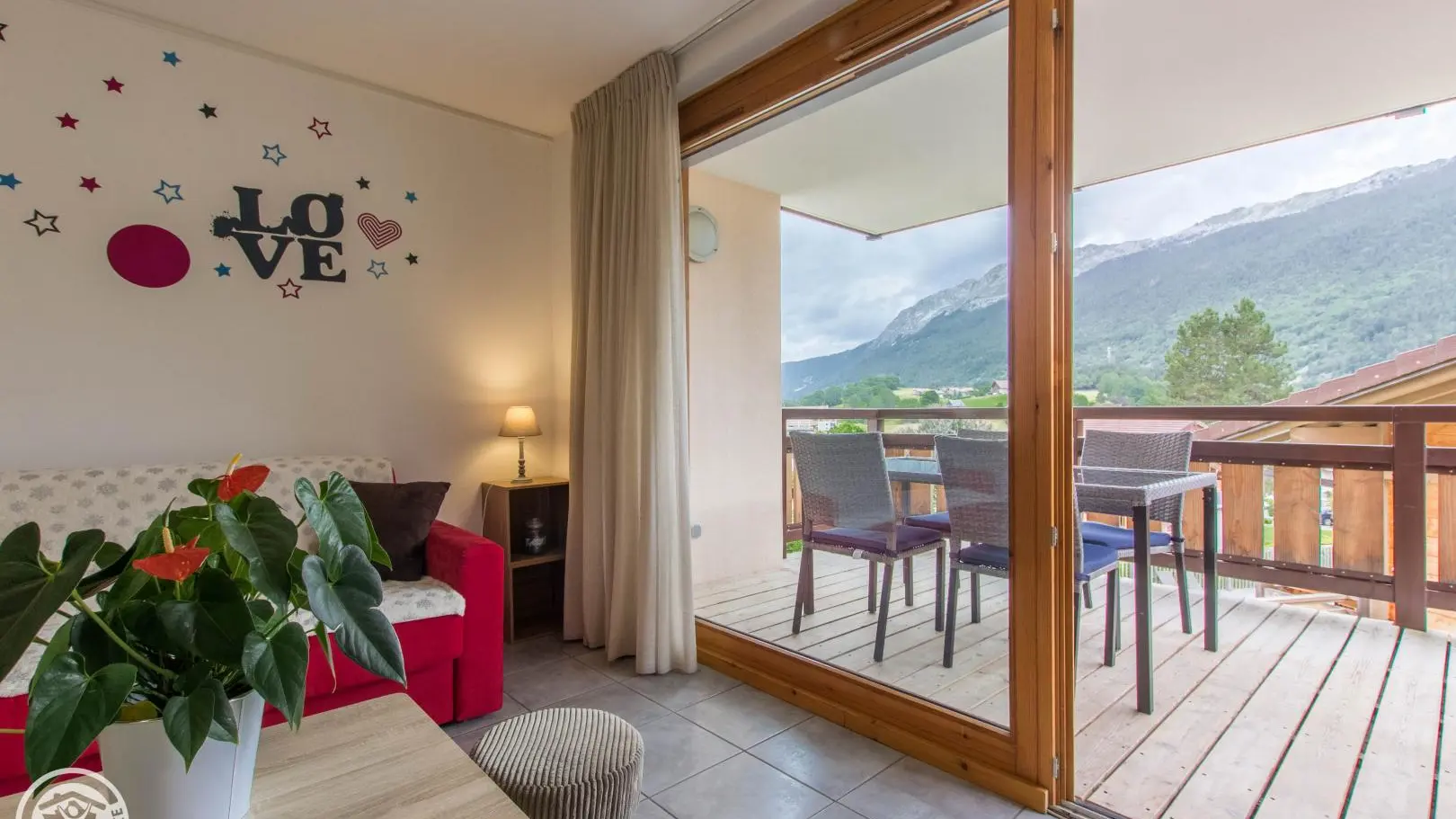 2 balconi: 1 ampio balcone (10 m²) accessibile a ovest dal soggiorno con mobili da giardino, plancha, vista sulle montagne e 1 altro balcone (8,5 m²) esposto a nord accessibile dalla 2a camera da letto.