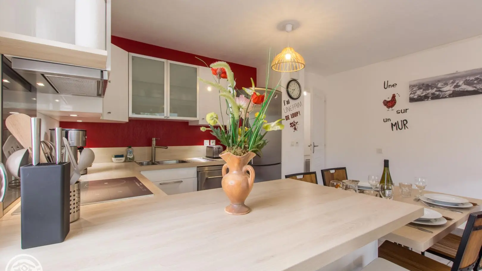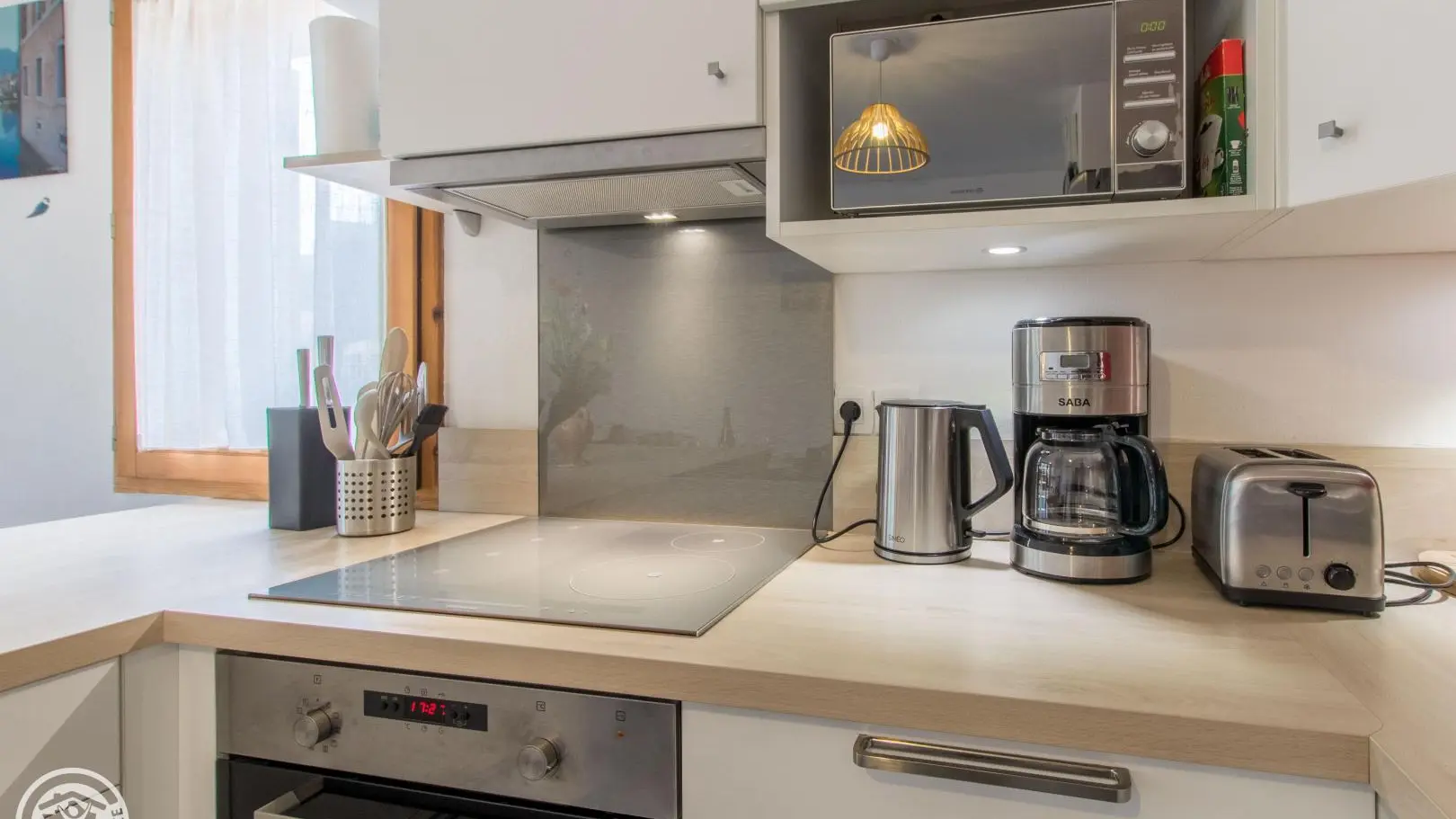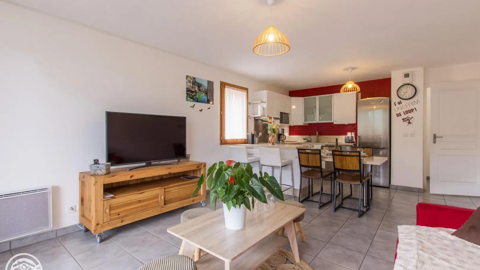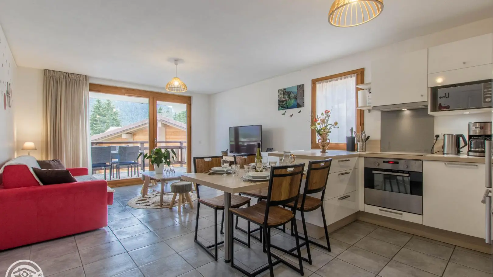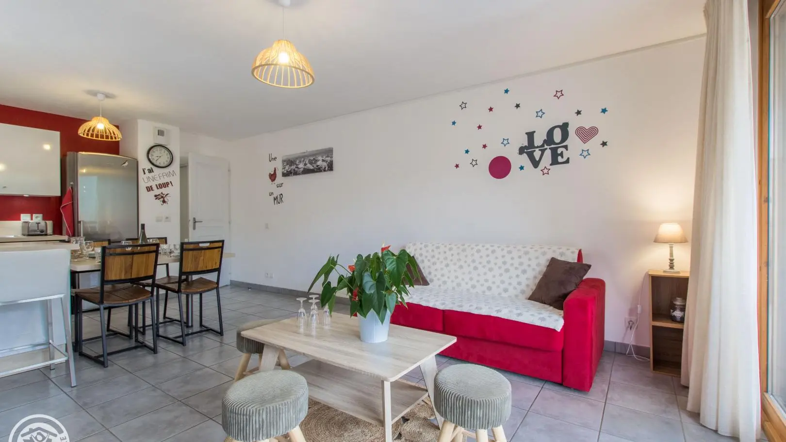 2 balconi: 1 ampio balcone (10 m²) accessibile a ovest dal soggiorno con mobili da giardino, plancha, vista sulle montagne e 1 altro balcone (8,5 m²) esposto a nord accessibile dalla 2a camera da letto.