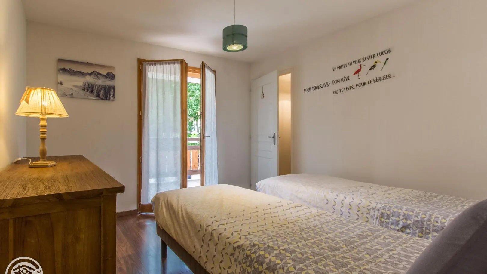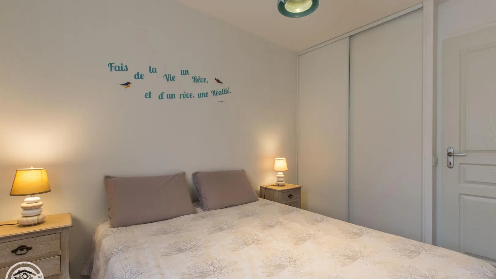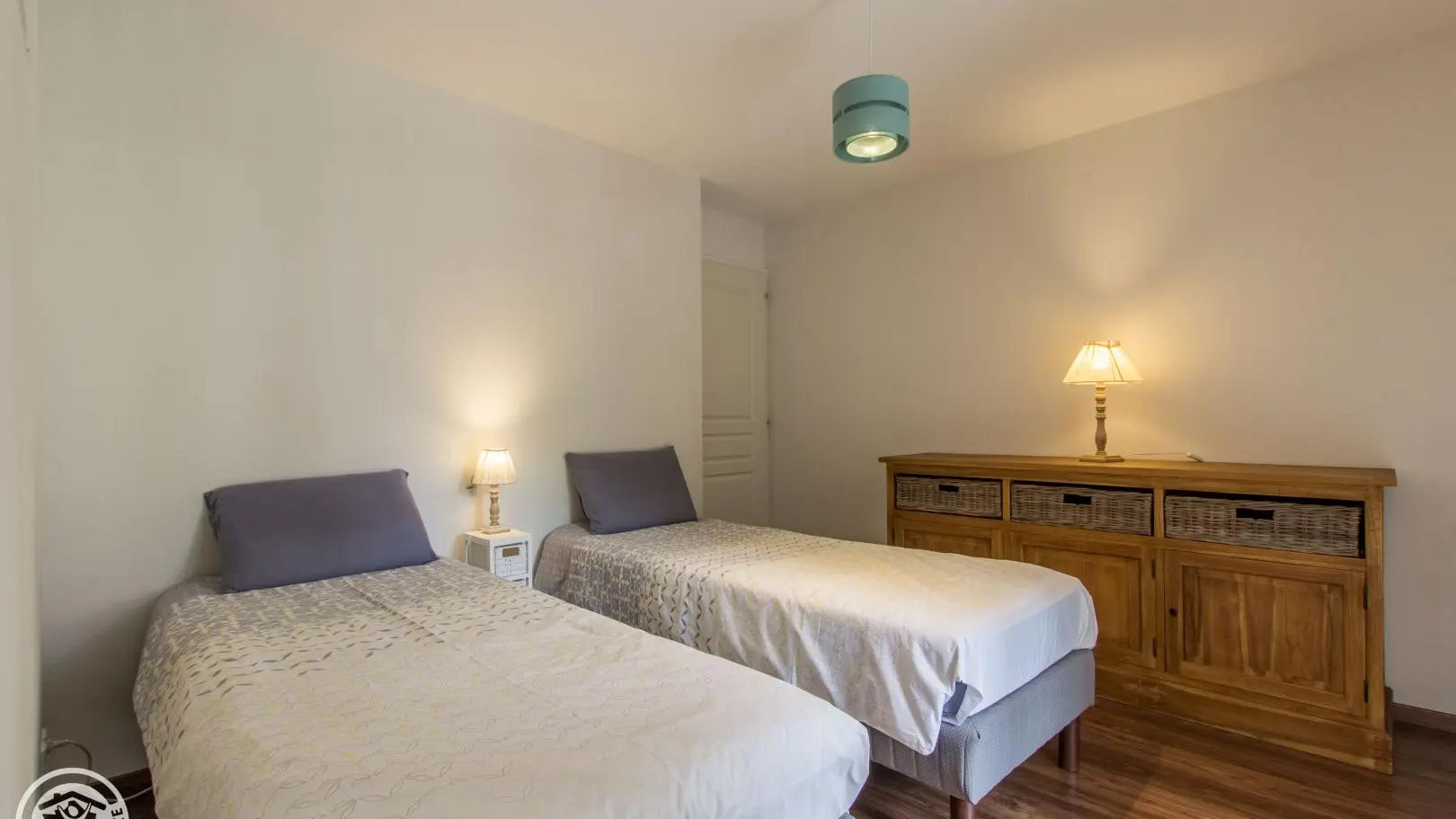 2 camere da letto: camera da letto 1 (1 letto 140x190 cm, armadio), camera 2 (2 letti singoli 80x200 cm per creare un letto matrimoniale su richiesta, ampio armadio, balcone).