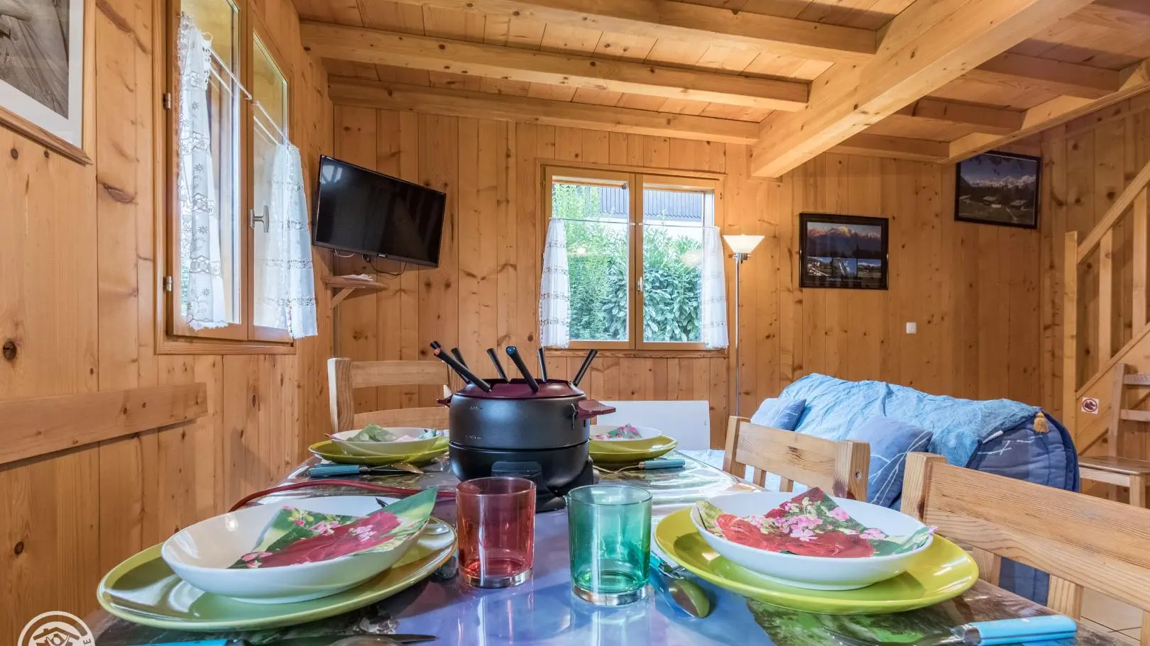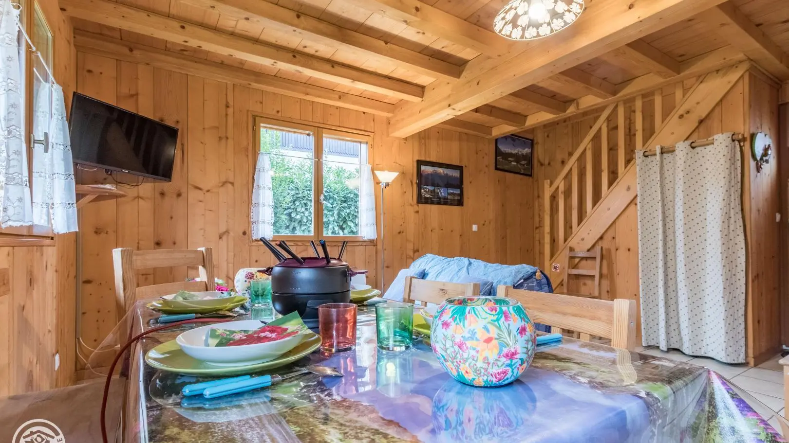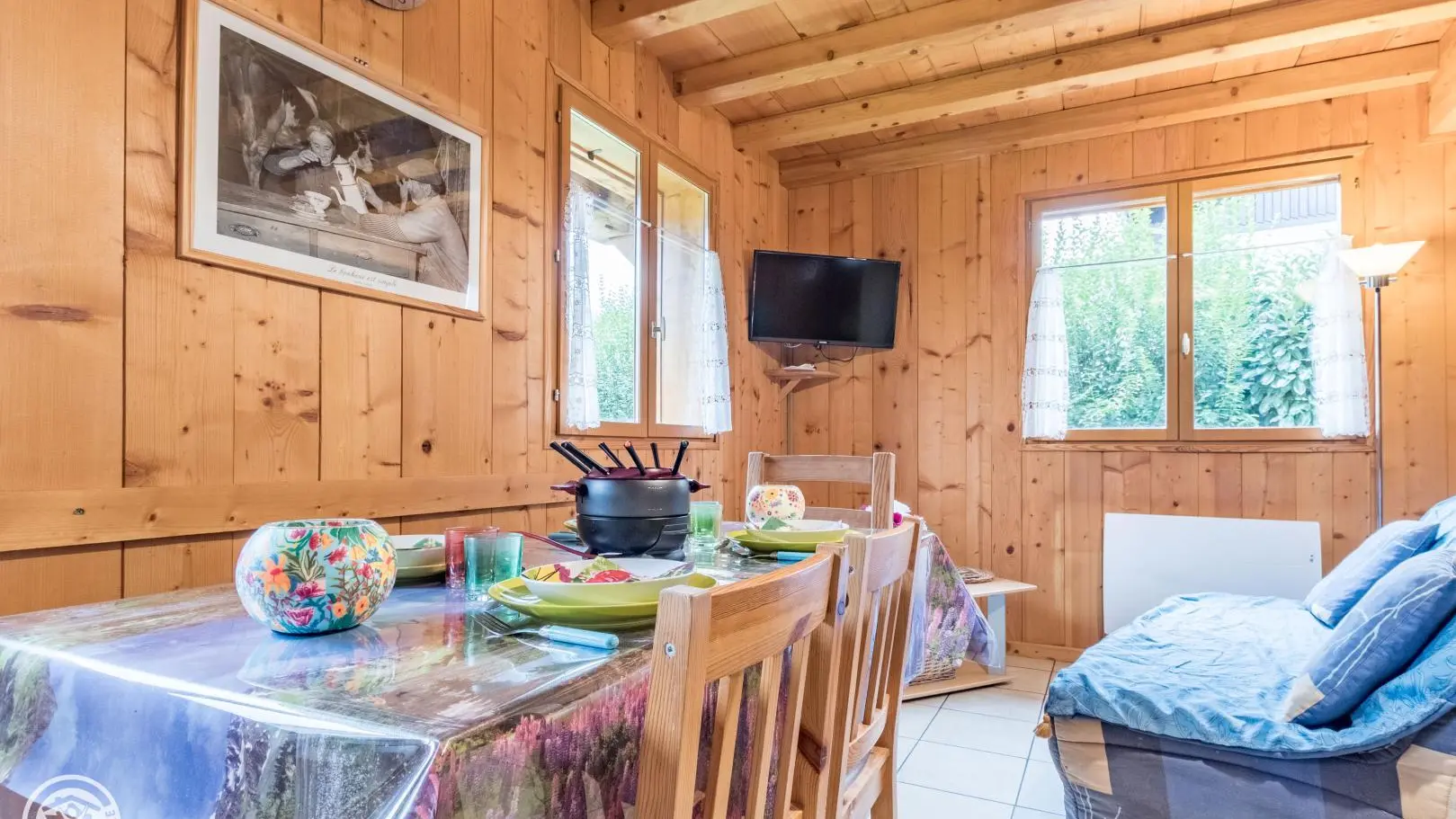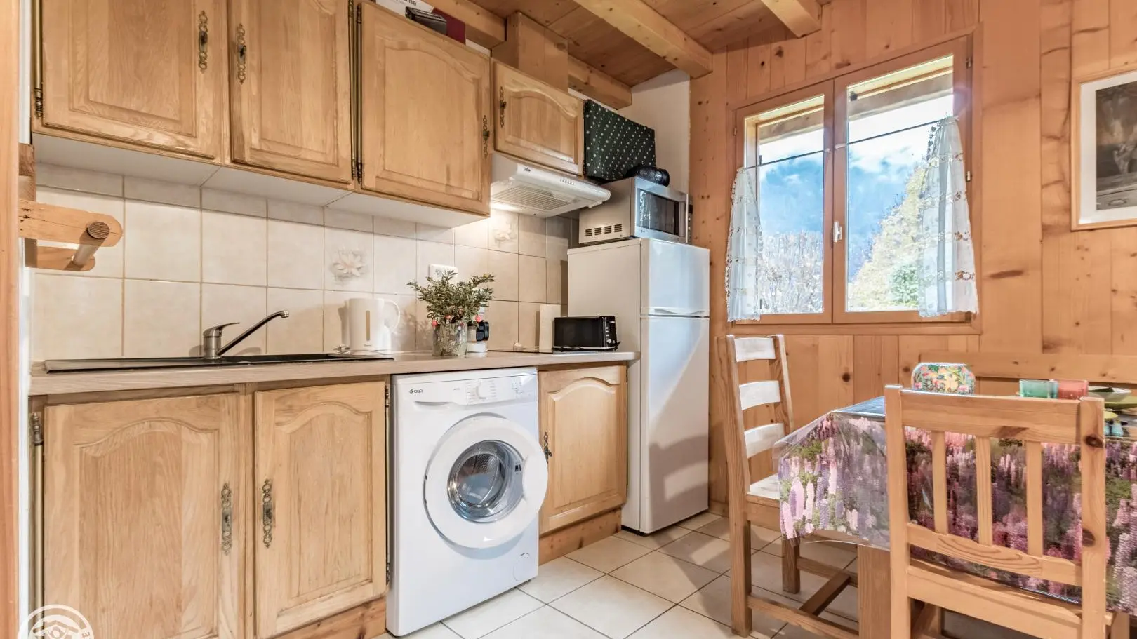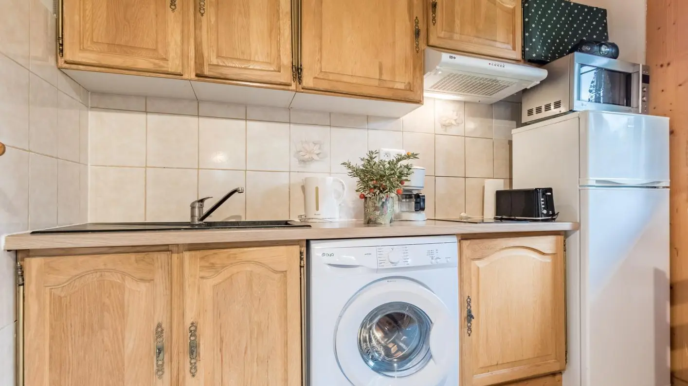 Posizione ideale per iradiare in tutto il paese del Monte Bianco. Al piano terra: cucina aperta sul soggiorno (divano letto, TV), bagno (doccia, WC).