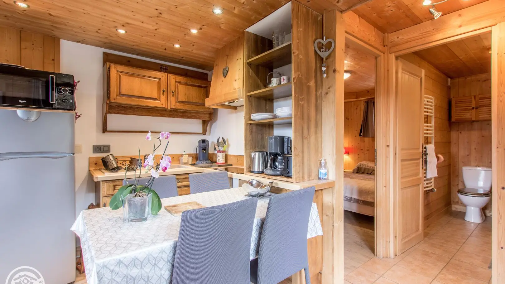Gîte di 26m2 disposto su un unico livello al piano terra dello chalet dei proprietari.