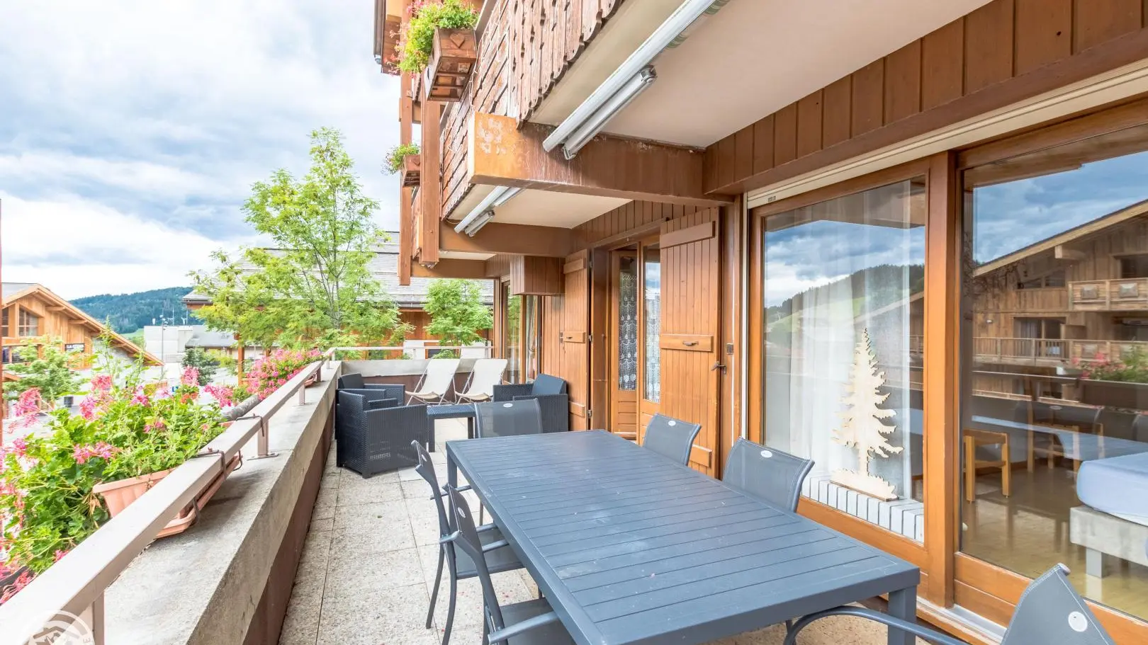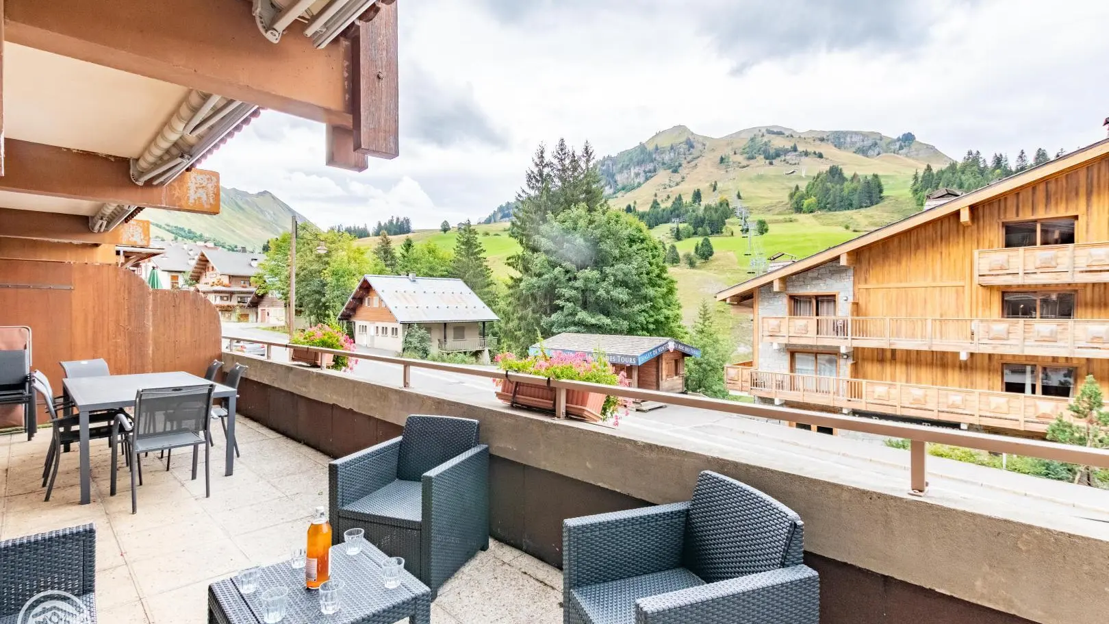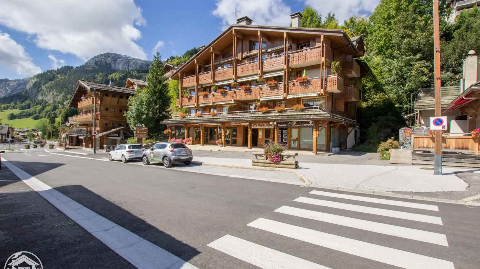 In un grande chalet familiare di fronte alle piste da sci delle montagne Aravis in inverno, spazioso cottage di 109m ² al 1 ° piano con ascensore. Il cottage comprende 3 negozi al piano terra (parrucchiere, souvenir e agenzia immobiliare) e altre 4 case.