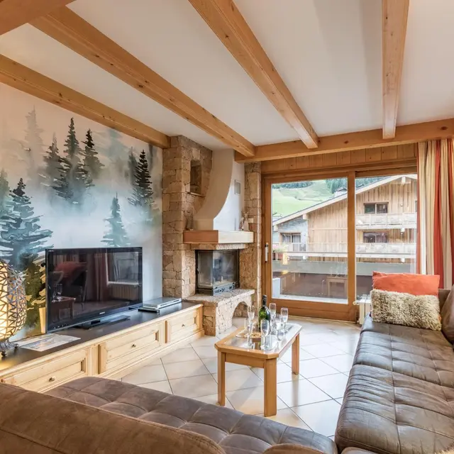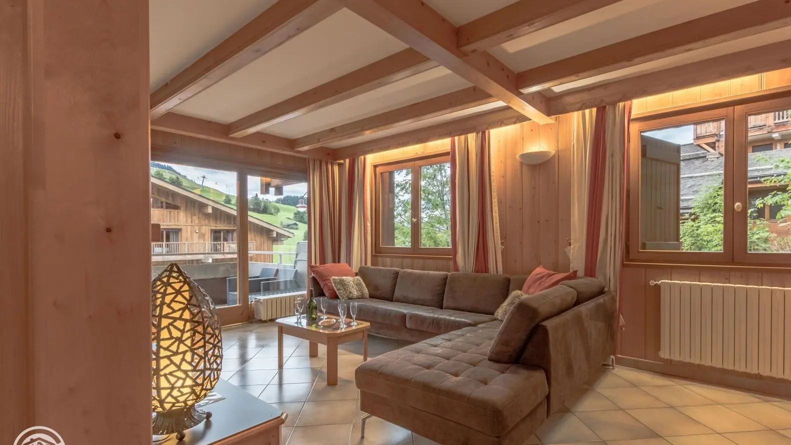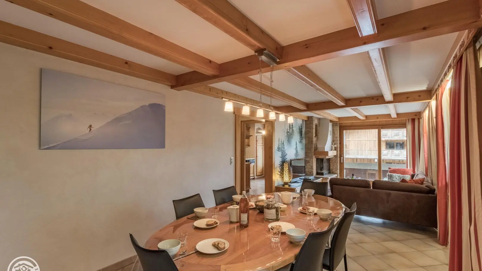 In un grande chalet familiare di fronte alle piste da sci delle montagne Aravis in inverno, spazioso cottage di 109m ² al 1 ° piano con ascensore. Il cottage comprende 3 negozi al piano terra (parrucchiere, souvenir e agenzia immobiliare) e altre 4 case.
