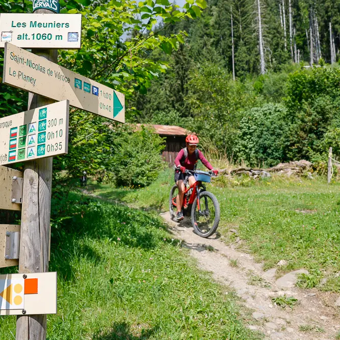 Uso del casco e protezioni vivamente raccomandate, mountain bike adatto alla discesa con sistema frenante adeguato. Guida alla mountain bike disponibile presso tutti i noleggiatori della valle così come negli alloggi degli Uffici di Turismo.
