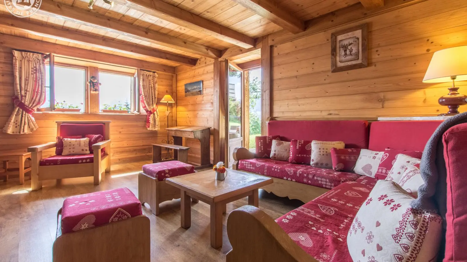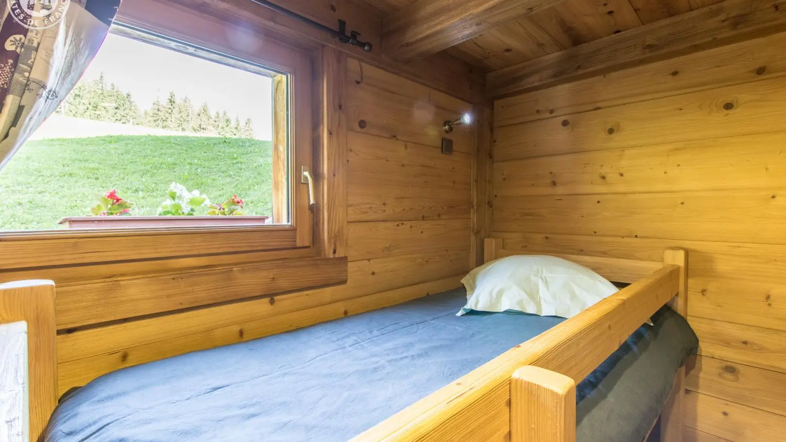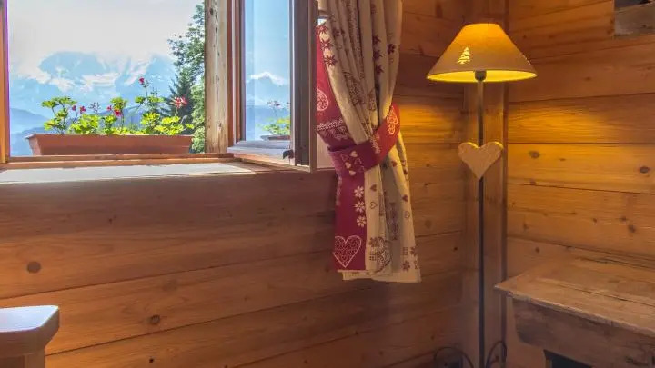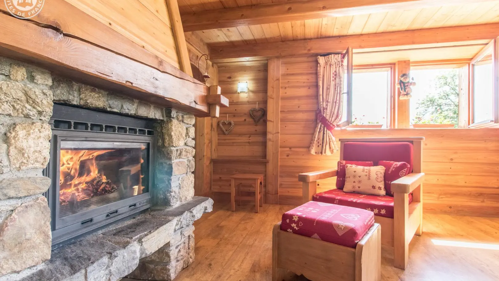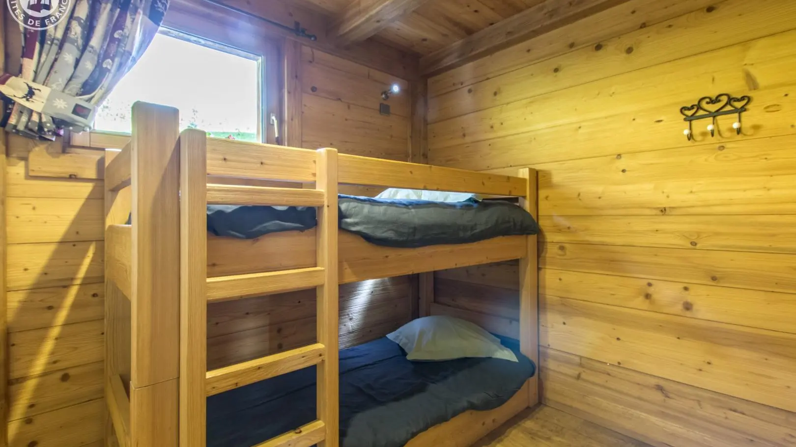 Ingresso indipendente dalla terrazza. Il cottage è sullo stesso livello: cucina aperta sul soggiorno (divano, camino), camera da letto 1 (2 letti 90x200cm a due letti 180 cm), camera da letto 2 (2 letti 80x190 cm a castello), camera 3 (1 letto 160x200 cm). Bagno con doccia, WC separato. Internet wifi Le lenzuola sono fornite. Terrazza privata di fronte alle montagne, con tavolo foresta, sedie a sdraio. Giardino in comune con giochi per bambini. Armadio per gli sci