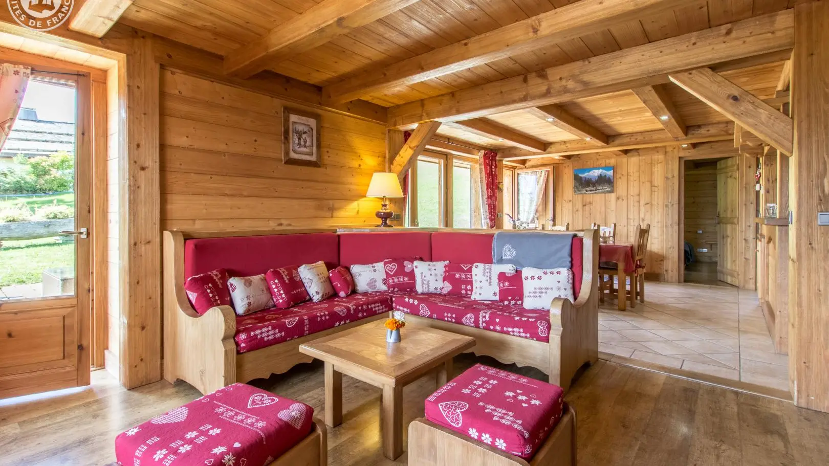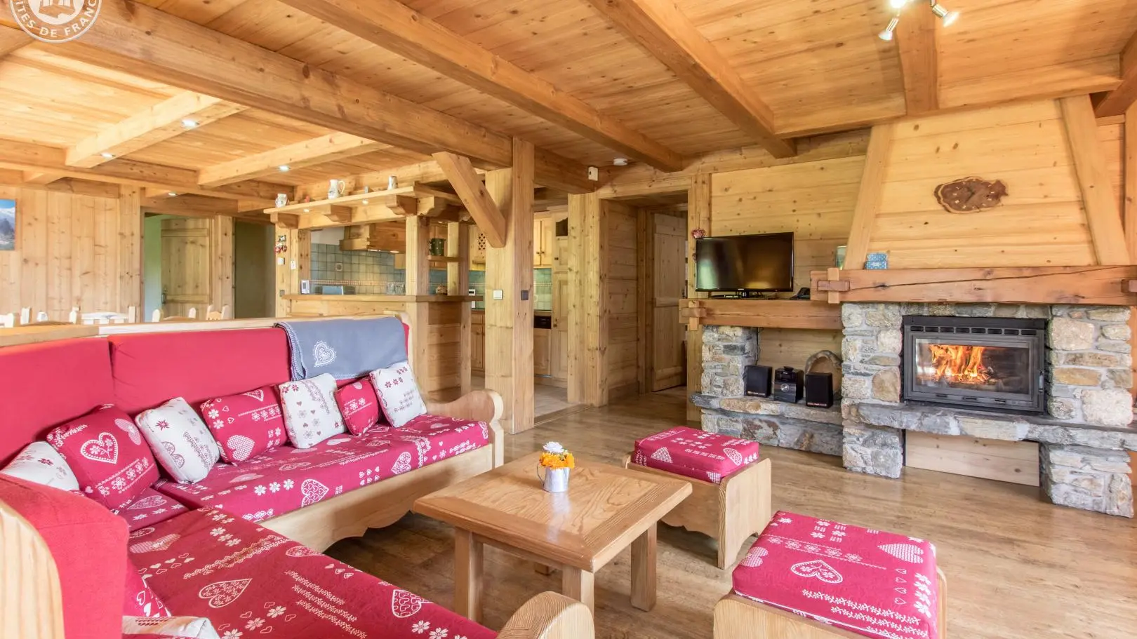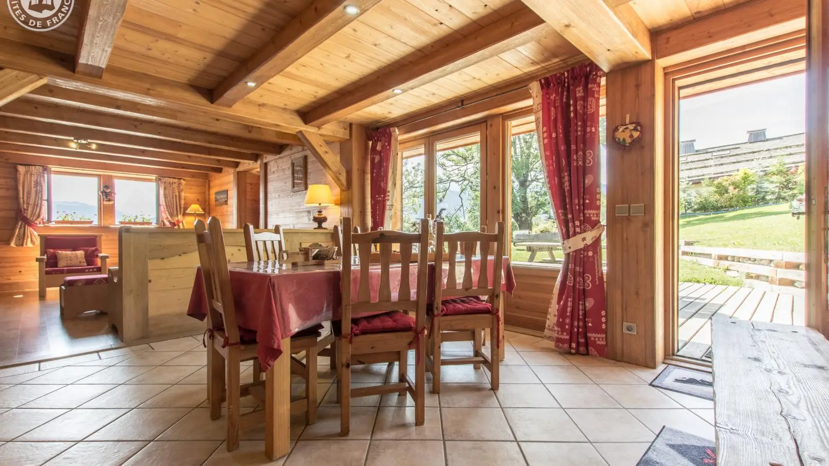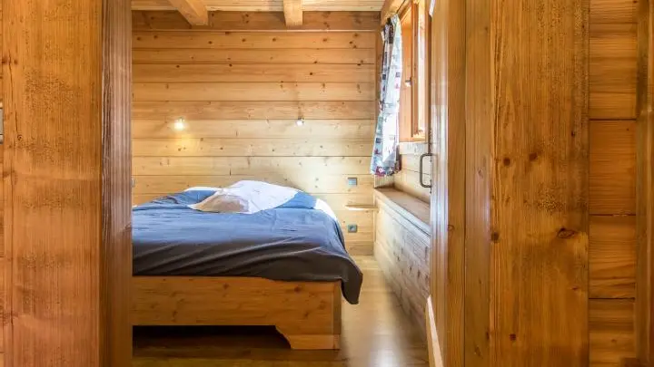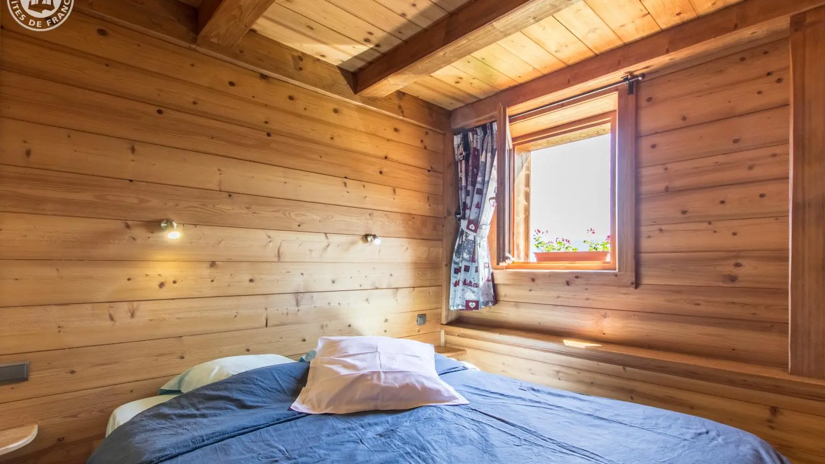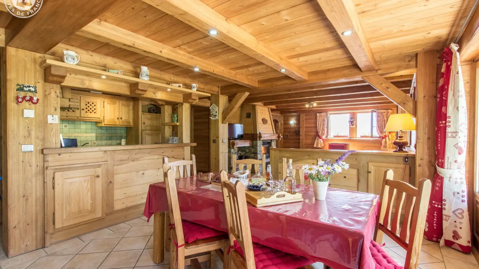 Ingresso indipendente dalla terrazza. Il cottage è sullo stesso livello: cucina aperta sul soggiorno (divano, camino), camera da letto 1 (2 letti 90x200cm a due letti 180 cm), camera da letto 2 (2 letti 80x190 cm a castello), camera 3 (1 letto 160x200 cm). Bagno con doccia, WC separato. Internet wifi Le lenzuola sono fornite. Terrazza privata di fronte alle montagne, con tavolo foresta, sedie a sdraio. Giardino in comune con giochi per bambini. Armadio per gli sci