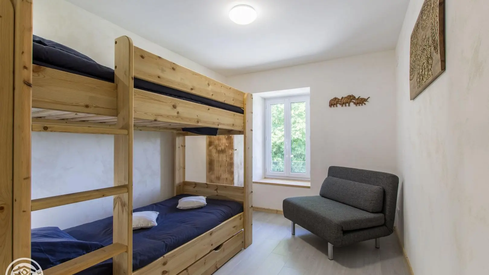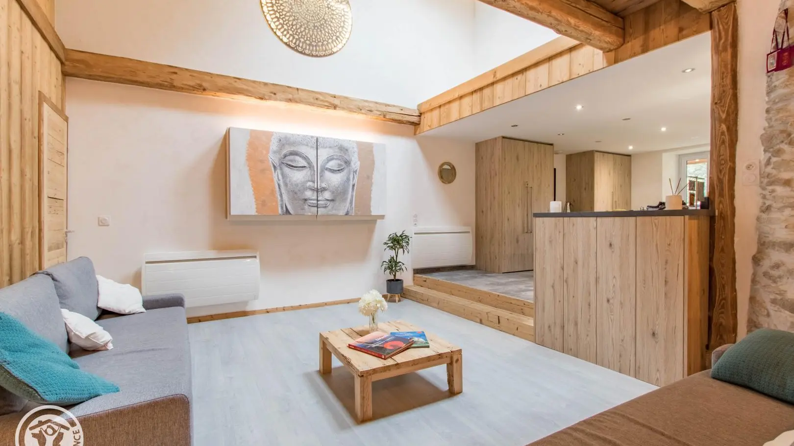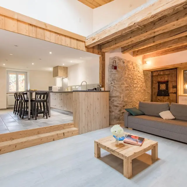 In una casa bifamiliare situata in un piccolo borgo (atmosfera di campagna) a 10 minuti dal Lago di Ginevra, appartamento di 72 m² disposto al piano rialzato (accesso tramite alcuni gradini). Possibilità di 1 persona in più, ovvero 5 persone (solo se sono presenti bambini).