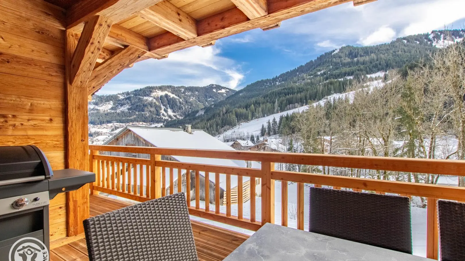 Traditioneel vrijstaand chalet van 110m² op één niveau. Uitzicht op de bergen. Rustige ligging. Terras en tuin op het zuiden.